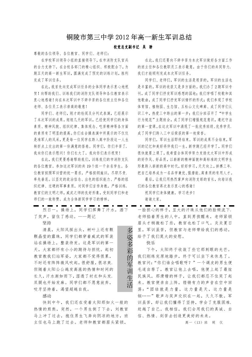 2012年军训专刊第二期