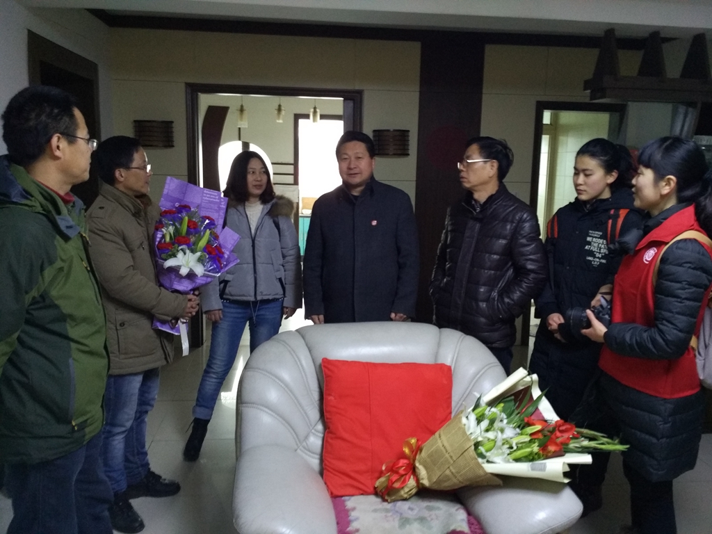 2月4日上午,听闻宋正老师短暂返铜,市三中党总支书记、校长钟士标、党总支副书记吴翀、保卫科长林强、政教主任章学标、工会负责人陈晰、团委王俊朝老师和学生代表葛泰然一行与志愿者和爱心网友一起前去探望和慰问。