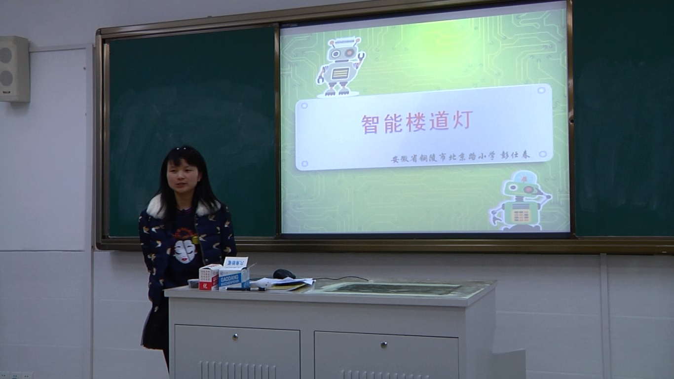 活动中,铜陵市北京路小学的彭仕春老师进行了《智能楼道灯》一课的说课展示。此课程为苏科名师工作师机器人公益培训校本教材中的内容。彭老师对教材、学情、教学重难点、教学过程等方面做了深入的阐述和分析。在教学过程中,彭老师结合生活实际,设置了合理的程序设计任务,激发了学生在学习枯燥的程序设计中的兴趣。通过“情节导入”—“分析架构”—“自主设计”—“深入探究” —“作品评价” —“总结拓展”六个步骤,让学生通过智能楼道灯模型的搭建及程序编写,培养学生动手能力、协作能力和创造能力。