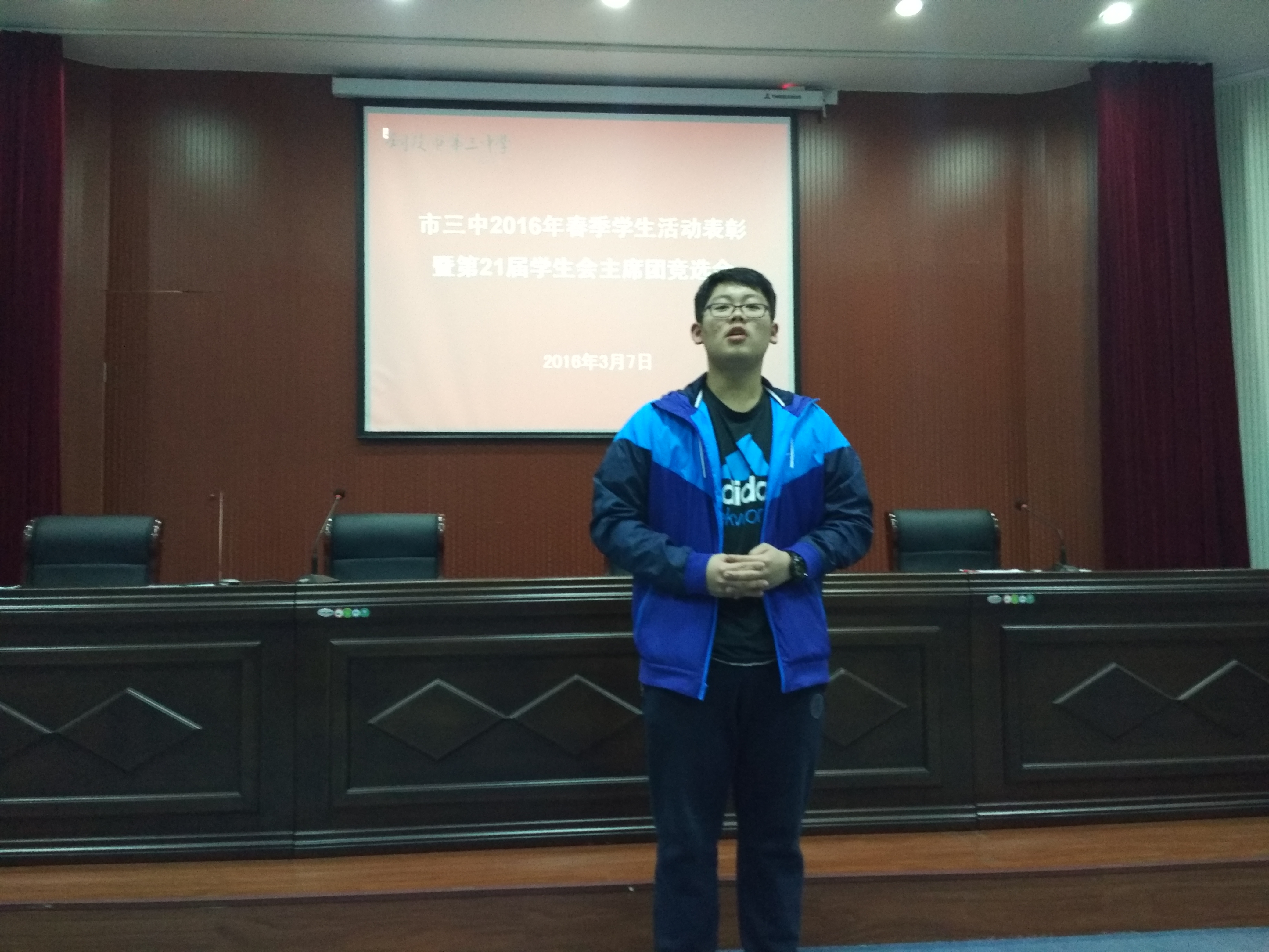 会议首先由206班江楠同学代表校学生会作总结发言,江楠同学全面汇报了2015年度以来学生会的重点工作开展情况,客观分析了学生活动目前存在的一些问题和不足,并提出改进措施和今后努力方向。