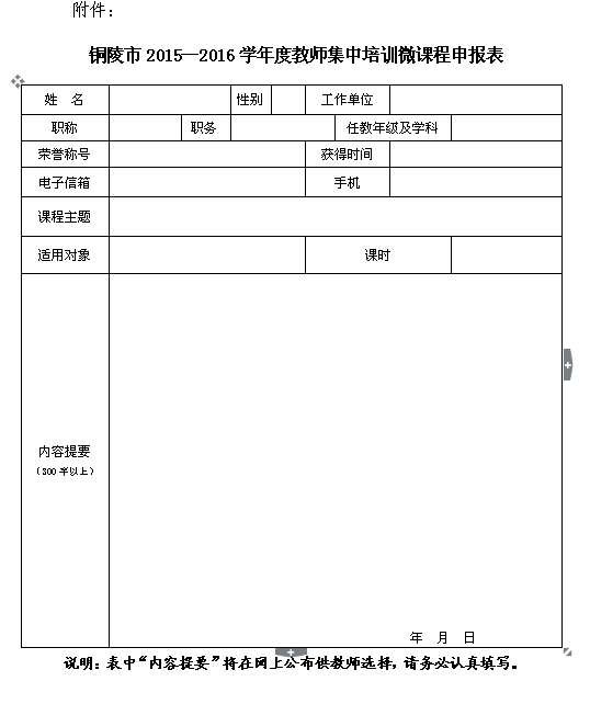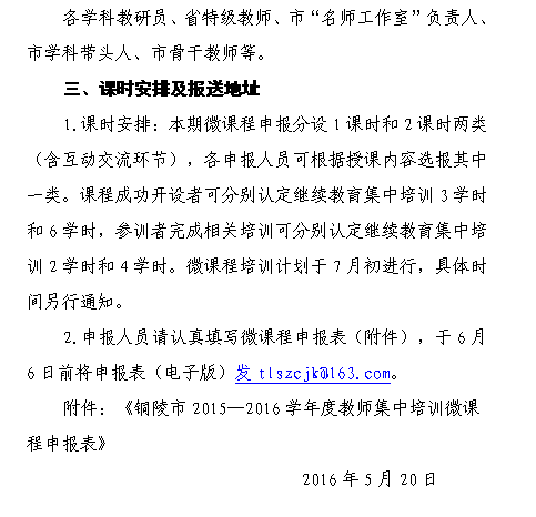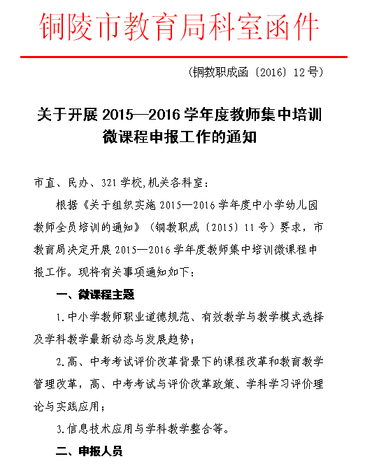 层转铜陵市教育局《关于开展2015—2016学年度教师集中培训微课程申报工作的通知》