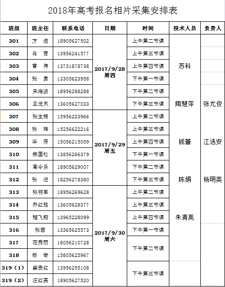 根据教育部的要求,自2018年起,各年度所有类型普通高校考试招生报名及考生资格审查工作须于上年年底前完成。相比于去年,2018年安徽省高考报名时间提前了一个月。除了报名时间提前外,报名方式上也进行合并。为了应对2018高考报名方案的变化,在校领导的高度重视下,我校教务处和信息中心提前对高考报名相关工作进行相关部署,其中将高考报名工作中2015级考生相片采集工作提前进行。具体工作安排如下: