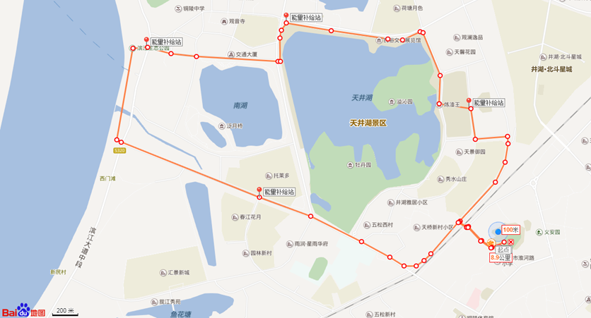 (路线图标注“能量补给站”的地方,我们将安排老师带车等候,提供矿泉水和常用药物,个别身体状况不佳的同学可以向班主任报告后进入“能量补给站”休整后让站内老师开车送回到班级队伍;身体严重不适的同学可以由站内老师开车送回到学校值班室休息,等待所有同学返回后一同返回教室。)