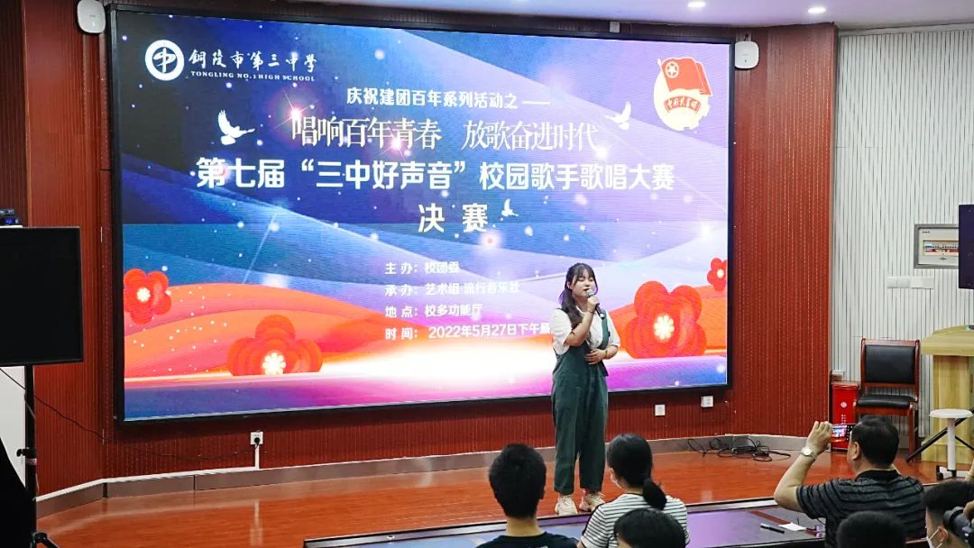 五月花正艳,青春放歌时。适逢建团百年之际,5月27下午,第七届“三中好声音”校园歌手决赛在校多功能厅精彩上演。12位入围决赛选手用他们的激情和歌声,为整个赛程画上了圆满句号,也为百年团庆献上了真情的祝福。