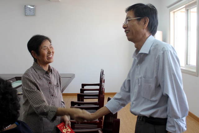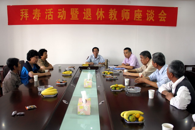9月12日下午,我校工会邀请部分退休教师座谈并给年满70周岁的老教师拜寿,校党总支副书记吴翀首先代表学校党总支及工会向退休教师致以节日问候,并给年满70周岁的钱剑鹏、徐荣珍老师颁发慰问金。会上,钱剑鹏、何万春、俞康勤等老师纷纷发言畅谈体会、憧憬未来,回顾学校过去的艰难岁月、看到现在喜人的发展形势,老教师们激动心情溢于言表。座谈会上充满温馨和谐的气氛。