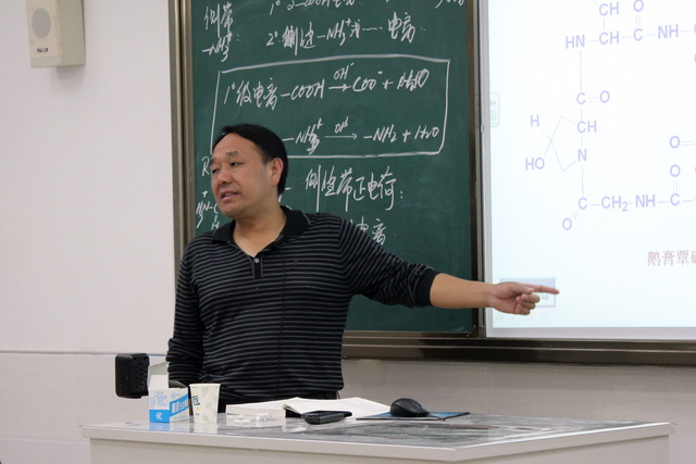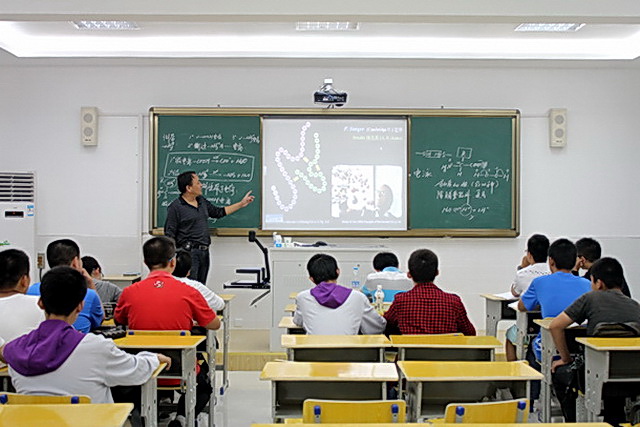 10月5日,生物竞赛专家辅导讲座在装修一新的校科学馆五楼录播室成功开讲。 来自马鞍山二中的魏昌华老师作为首位为我校学生辅导的专家热情开讲。魏老师从生物竞赛的基础专题开始讲起,通过大量的竞赛实例展示、精析,为同学们合理高效地进行竞赛学习指明了方向。(魏昌华:中学生物高级教师,马鞍山市市级骨干教师,辅导的学生有近20人在生物竞赛中分获国家级、省级奖。)