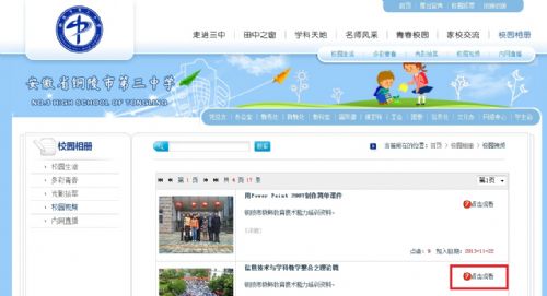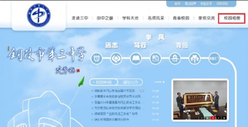 第一步:打开校园网(www.tlsz.net),单击“校园相册”按钮
