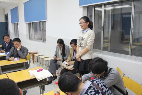 在此次活动中,我校精心准备了两节公开课,分别是汪春生老师的《子路、曾皙、冉有、公西华侍坐》和陆子娟老师的《春江花月夜》。听完课后,两校教师积极进行了评课,分别从教学功底、教材把握、教学设计、教学理念等方面对这两堂课进行了分析,共同探讨不同的教学方式,并充分肯定了两位青年老师的教学,还就课堂教学存在的问题给予了中肯的建议。我校教研室主任钱军参加了此次听课评课活动。在最后的总结中,钱军首先对望江中学来校交流表示欢迎和感谢,并指出此次试水公开课的均是我校青年教师,青年教师是我校教育教学的中坚和未来,学校致力于青年教师的培养,让青年教师在磨练中成长。