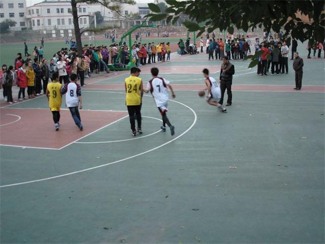场中打篮球的队员,一个个精神抖擞。运球,传球,转身,投篮,动作如此连贯,如此流畅。运动的身影散发着青春烦人活力与朝气,球进的一瞬间,观看的同学欢呼鼓掌,为球员打气,热闹的气氛驱走了寒意。