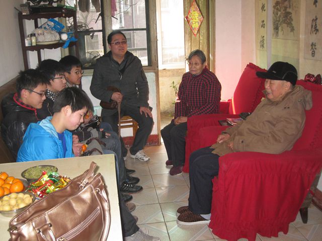 1月30日上午,阳光灿烂,暖意盎然,我校第十三届崔跃勇班级的学生代表在政教处副主任樊荣、政教干事崔洁和班主任伍光的带领下,慰问了崔跃勇的父母,并带去学校领导对两位老人的新春祝福。作为以烈士英名命名的班级,两年一届的接力棒已经传到2012级的高一(16)班的同学们手中,学校二十多年来的节前慰问也从未间断。