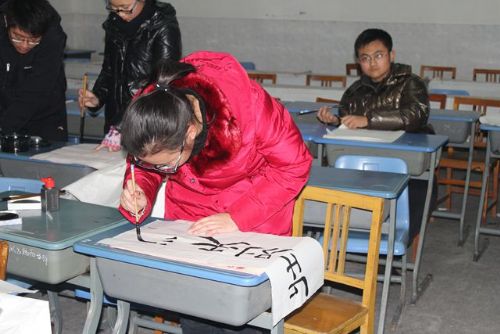为丰富校园文化生活,提高同学们的审美素质,展现汉字书写的独特魅力,传承中华文化,为广大书法爱好者提供一个交流和学习的平台, 2012年12月21日下午第四节课,我校第二十届校园文化艺术节现场书法大赛在科学馆五楼多媒体教室成功举行,经评委老师现场打分,评比一等奖13名,二等奖11名,三等奖17名。具体奖项分布情况如下: