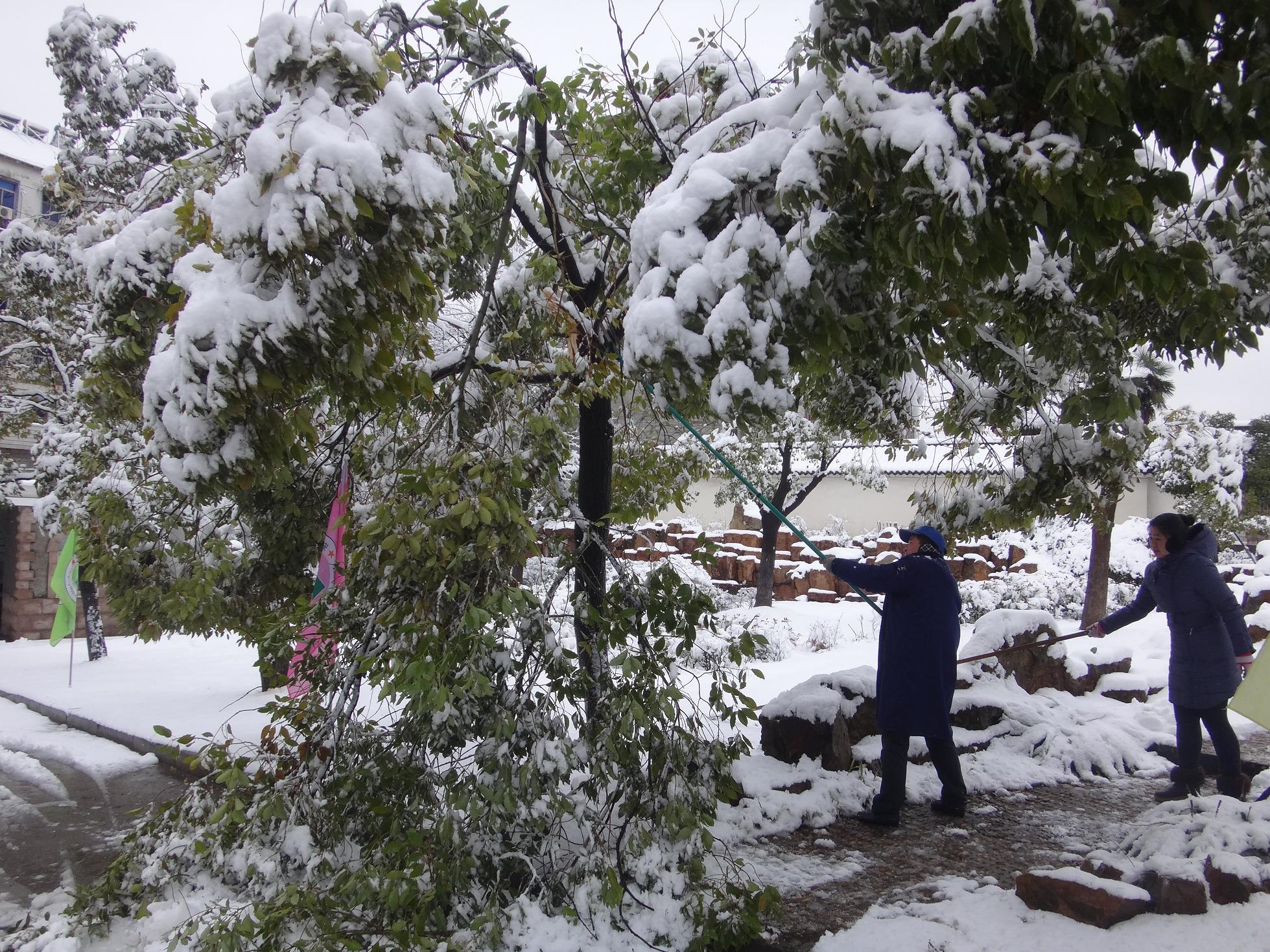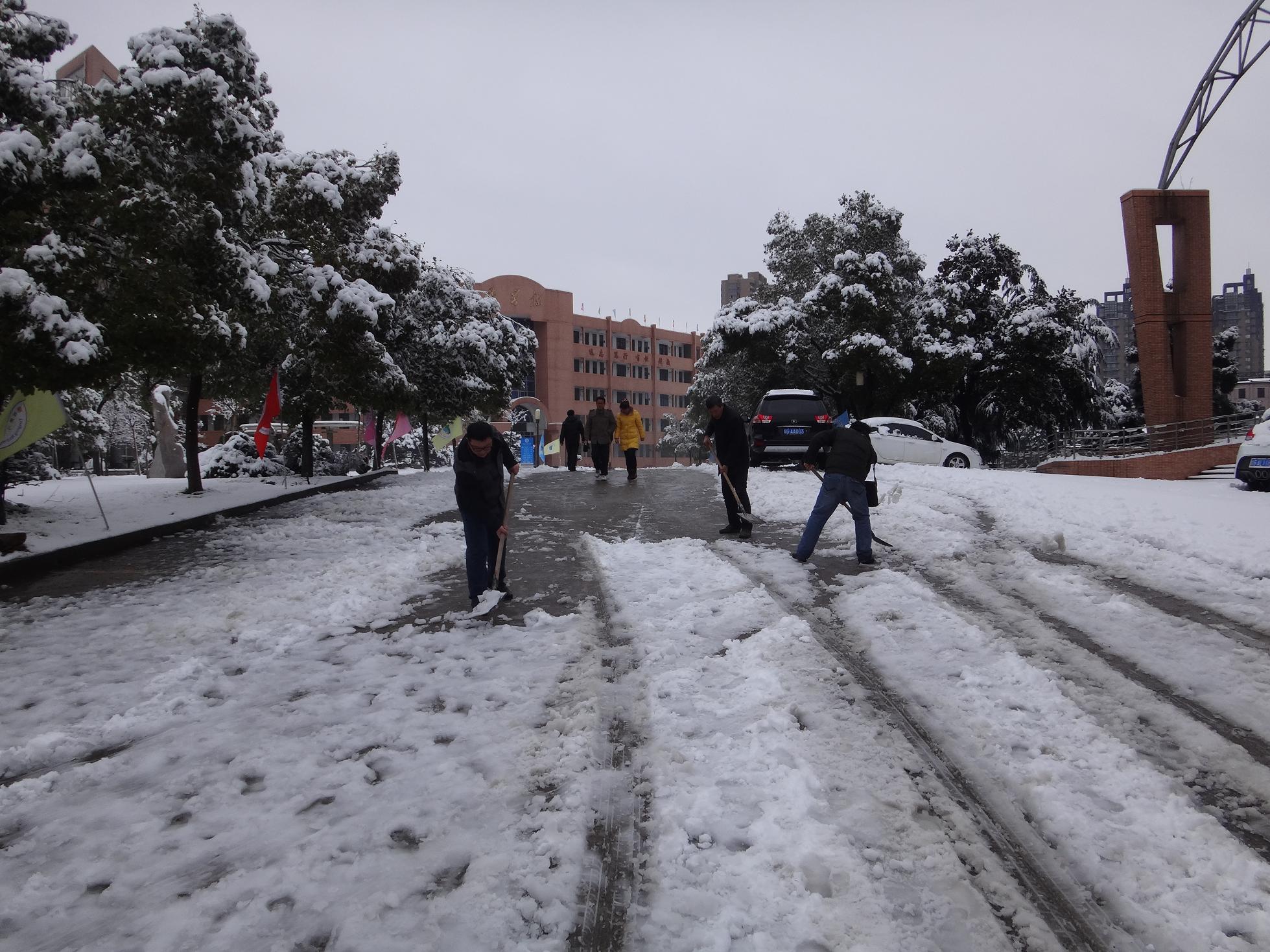 本校讯 昨夜,一场暴雪袭击我市。大雪过后,铜陵三中披上一层银色外衣,但是积雪也给学校道路的通行安全带来隐患。为了师生出行安全,今天上午,总务处全体工作人员与部分教职员工一起清扫校园道路积雪,清理被积雪压断的树枝,消除安全隐患,营造了三中雪后整齐清新的环境。