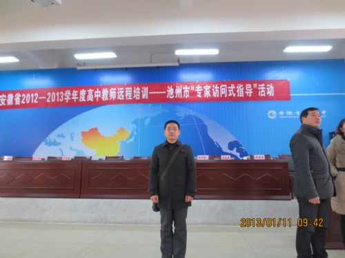 为贯彻《2012-2013学年度中小学教师全员培训指导方案》(皖教秘师〔2012〕21号)文件精神,落实《安徽省2012-2013学年度高中教师“有效学习内容”专题远程培训实施方案》(皖远教函〔2012〕3号)要求,1月11日,安徽省中小学教师教育网在池州市开展了高中教师远程培训“专家访问式指导”活动。