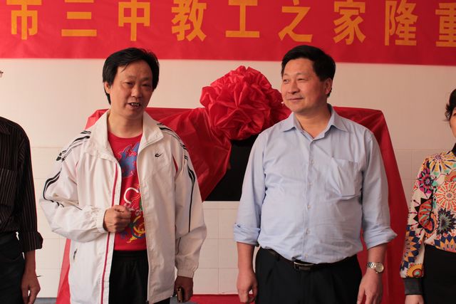 揭牌仪式由校工会副主席陈晰主持。教育局工会主席郑国代表教育局对三中新落成的“教工之家”表示热烈祝贺,并感谢铜陵三中领导对本校教职工在工作、生活各方面的关心,郑国主席对三中“教工之家”完善的体育健身设备设施做了高度赞赏,希望三中利用好现有资源,发挥教职工自身专长,带动更多人参与进来,丰富工会活动。