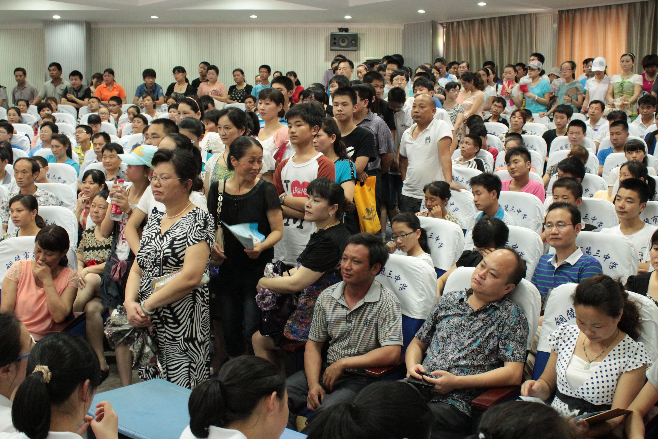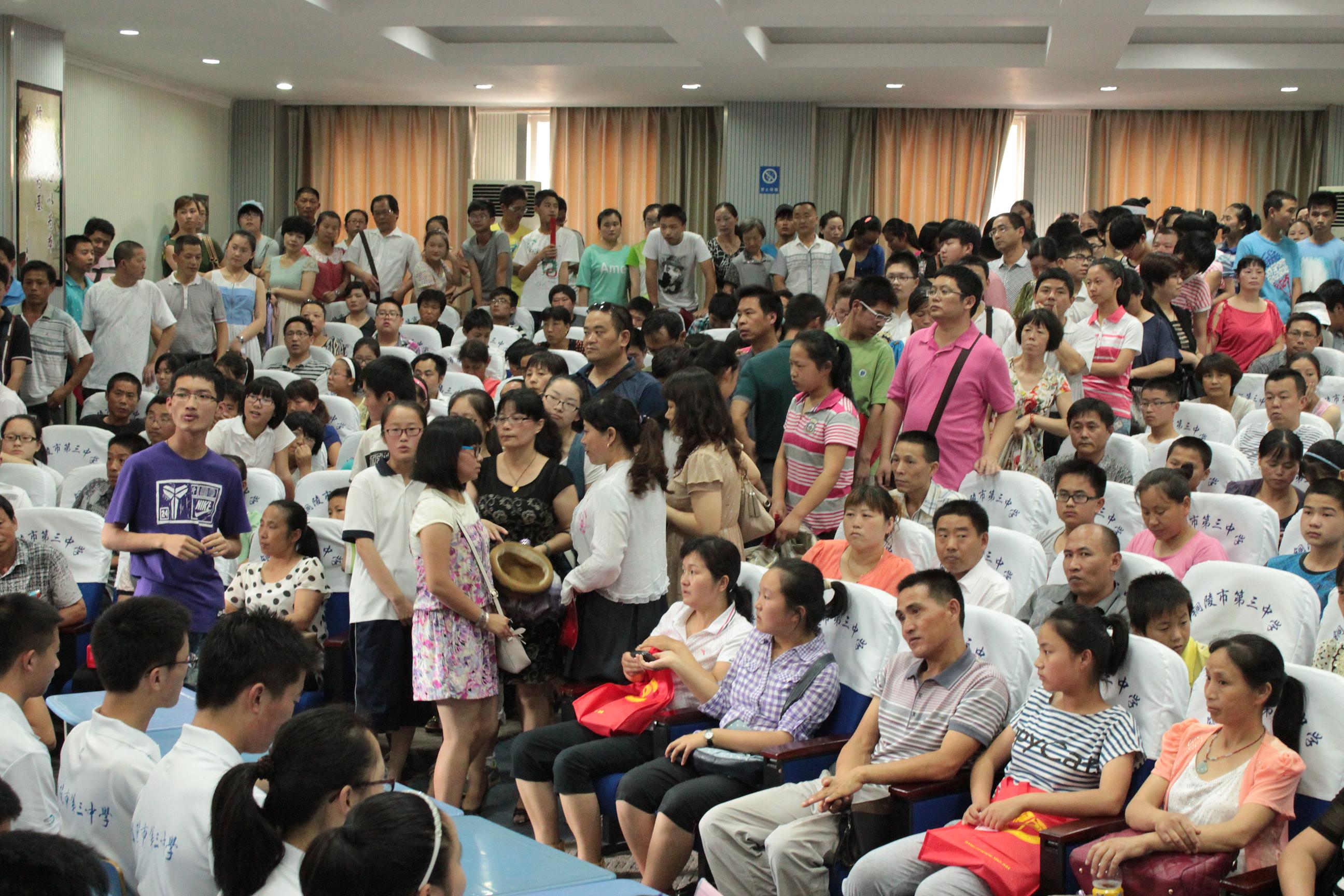 出乎工作人员预料,原本能容纳300人左右的报告厅挤入了500多人,走道和门口站满了前来听讲的家长和学生。更有学生家长提前一个多小时到达,抢的前排最佳位置。