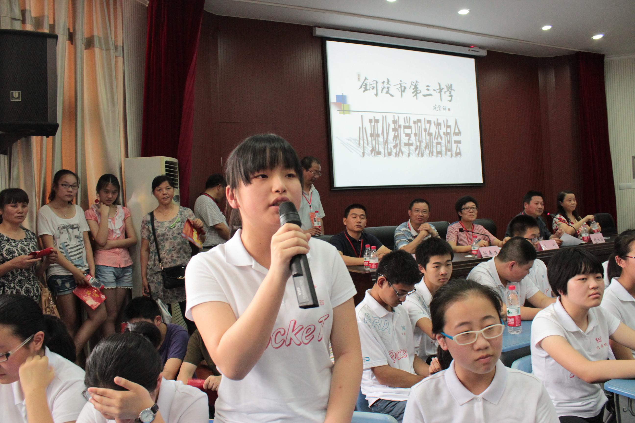 咨询招生会在愉快轻松气氛中进行,校长钟士标就小班化教学实验班具体招生政策向与会的家长和学生们做了介绍,并耐心细致地回答了家长和学生们关心的问题。