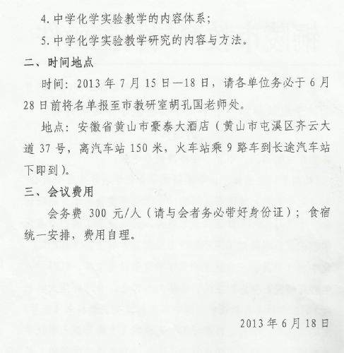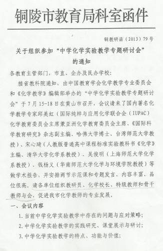 关于组织参加“中学化学实验教学专题研讨会”的通知