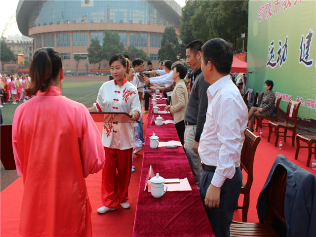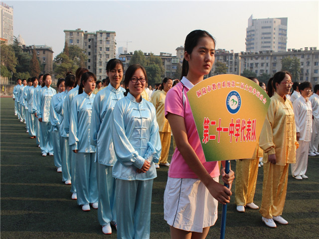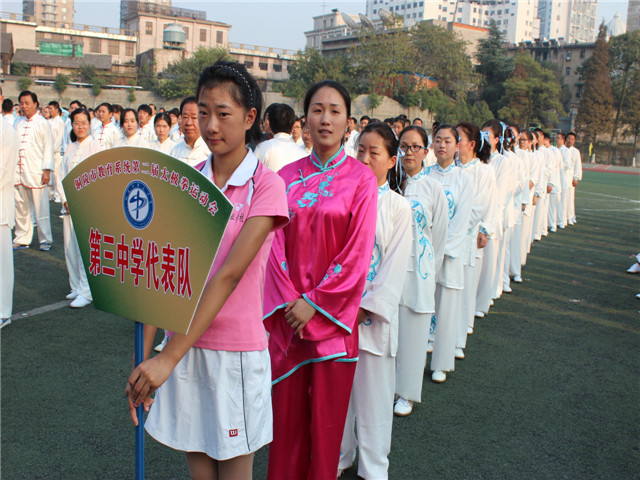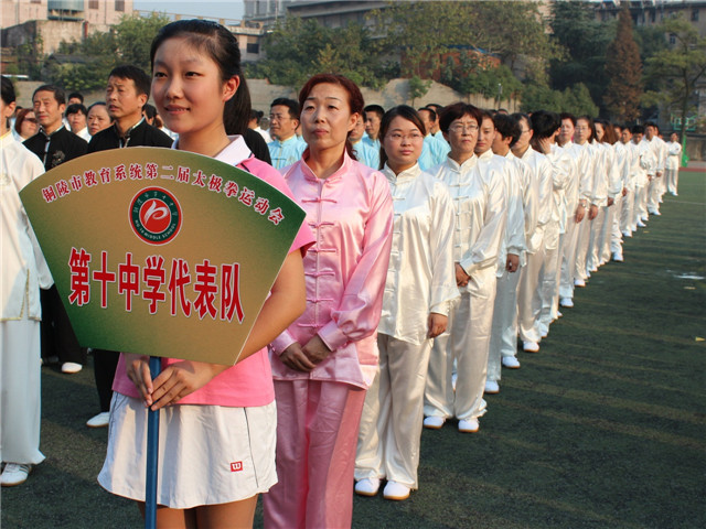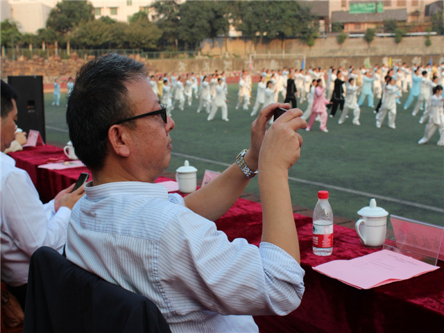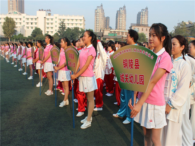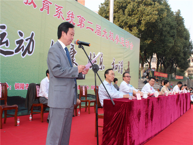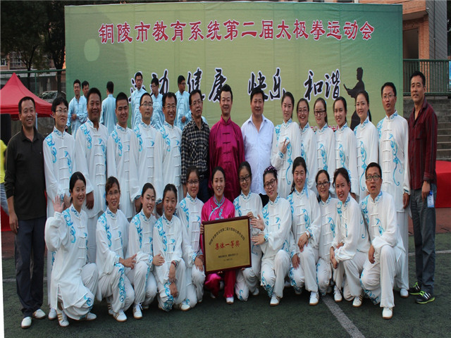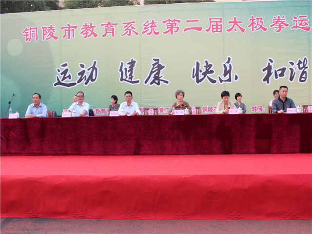 本校讯 2014年10月18日下午,第二届全市教育系统24式太极拳比赛在铜陵三中操场落下帷幕,市人大副主任黄玲、副市长叶萍、市政协副主席姚尚友、市教育局局长李勇等参加了闭幕式,此次比赛由市教育局主办、市教育局工会承办、市第三中学协办,来自全市的24支代表队和28名个人参加了此次比赛。