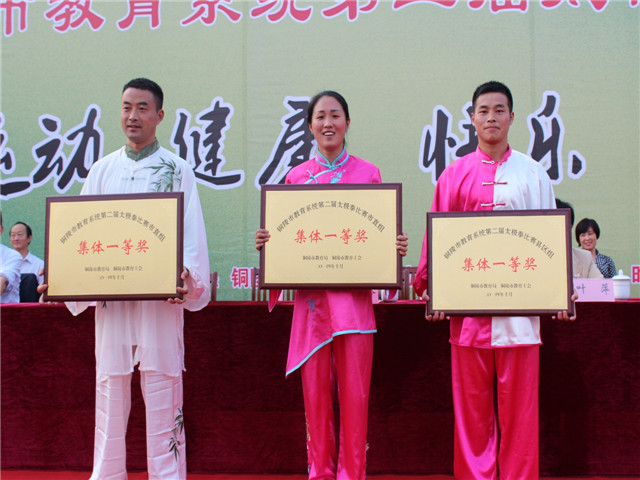 经过激烈的角逐,市三中、市一中代表队获得市直组团体一等奖,铜官山区教育局代表队获县区组一等奖。在闭幕式上,全体参赛选手共同表演的太极拳,气势恢宏,充分体现了我市教育系统的良好精神风貌。