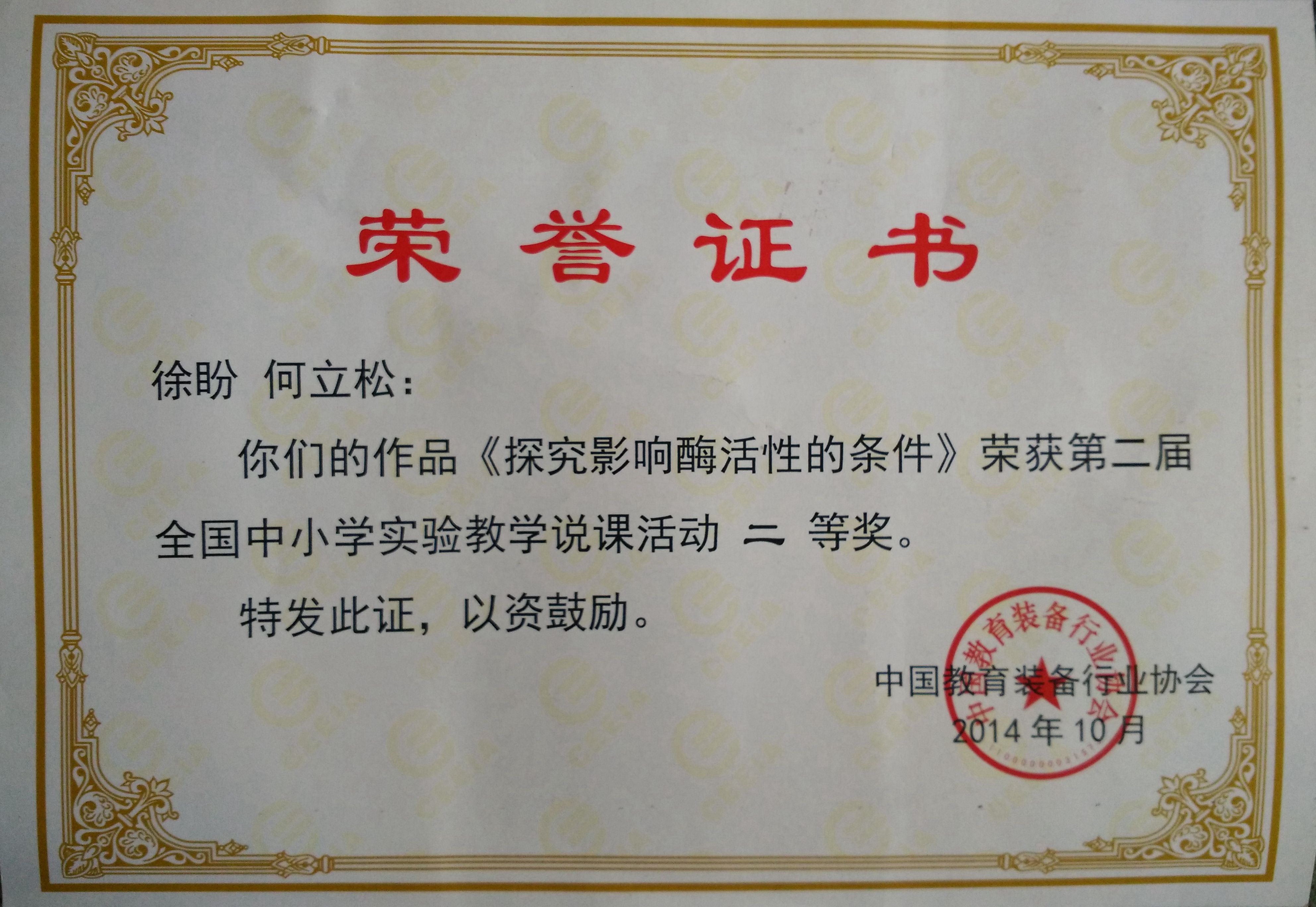 本校讯 记者从江西南昌进行的第二届全国中小学实验教学说课活动现场获悉,代表安徽省参加比赛的我校教师徐盼喜获全国二等奖。