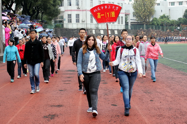 本校讯 择时不如撞日,10月31上午,经过精心准备、期盼已久的铜陵三中第49届运动会偏逢小雨,天公虽然不作美,但小雨没有淋灭全体师生热情。