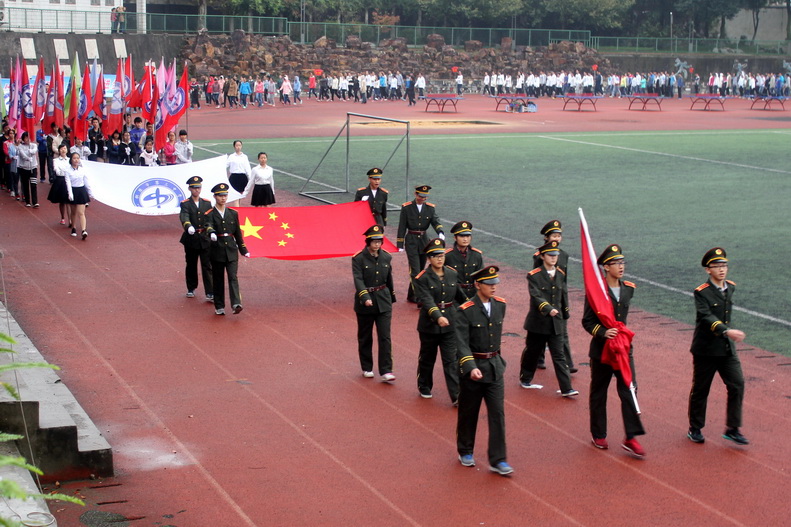 在激昂的运动员进行曲中,校国旗队执旗手们护卫着庄严神圣的国旗率先步入会场,接下来是校旗和会旗方阵,欢快的节奏响彻绿茵操场,各班级排着整齐的队伍、身着统一的服装,逐一入场接受检阅。同学们喊着嘹亮的口号、迈着整齐的步伐,展现出新时期铜陵三中学子健康、阳光、进步的精神风貌,随后,运动员代表和裁判员代表分别作庄严宣誓。