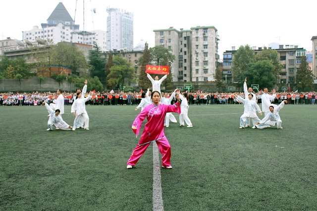 入场式结束后,获得全市教育系统太极拳比赛团体、个人双料冠军的我校教工太极拳队表演了24式简化太极拳。他们动静结合、刚柔快慢,气势充沛,一意一念、一举一动,挥洒自如,赢得了观众们的频频掌声。