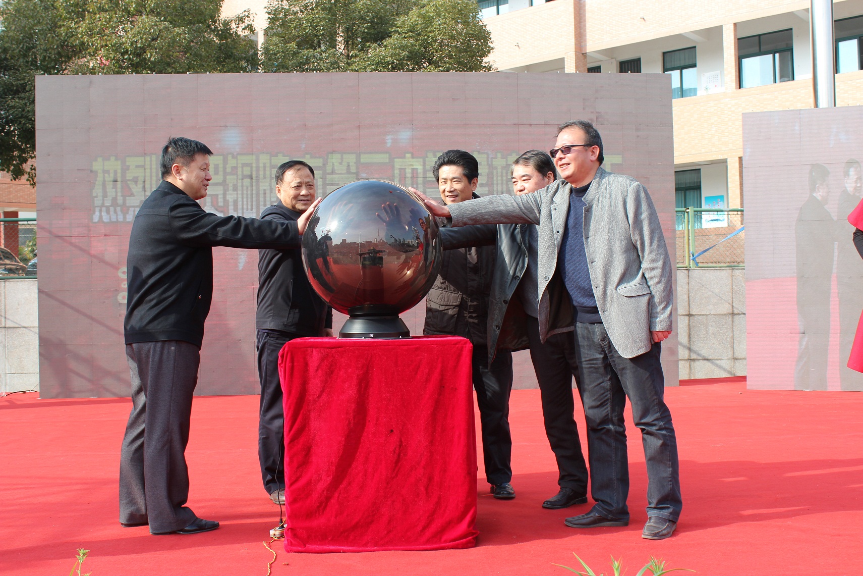 我校杰出校友代表陈良平先生、马苏安先生、李柯达先生、杨军先生和教育局长李勇先生共同为铜陵市三中建校50周年纪念活动启动仪式揭幕!老校友代表王黎明先生和老校长代表张世谧先生在会上发表了热情洋溢的讲话。