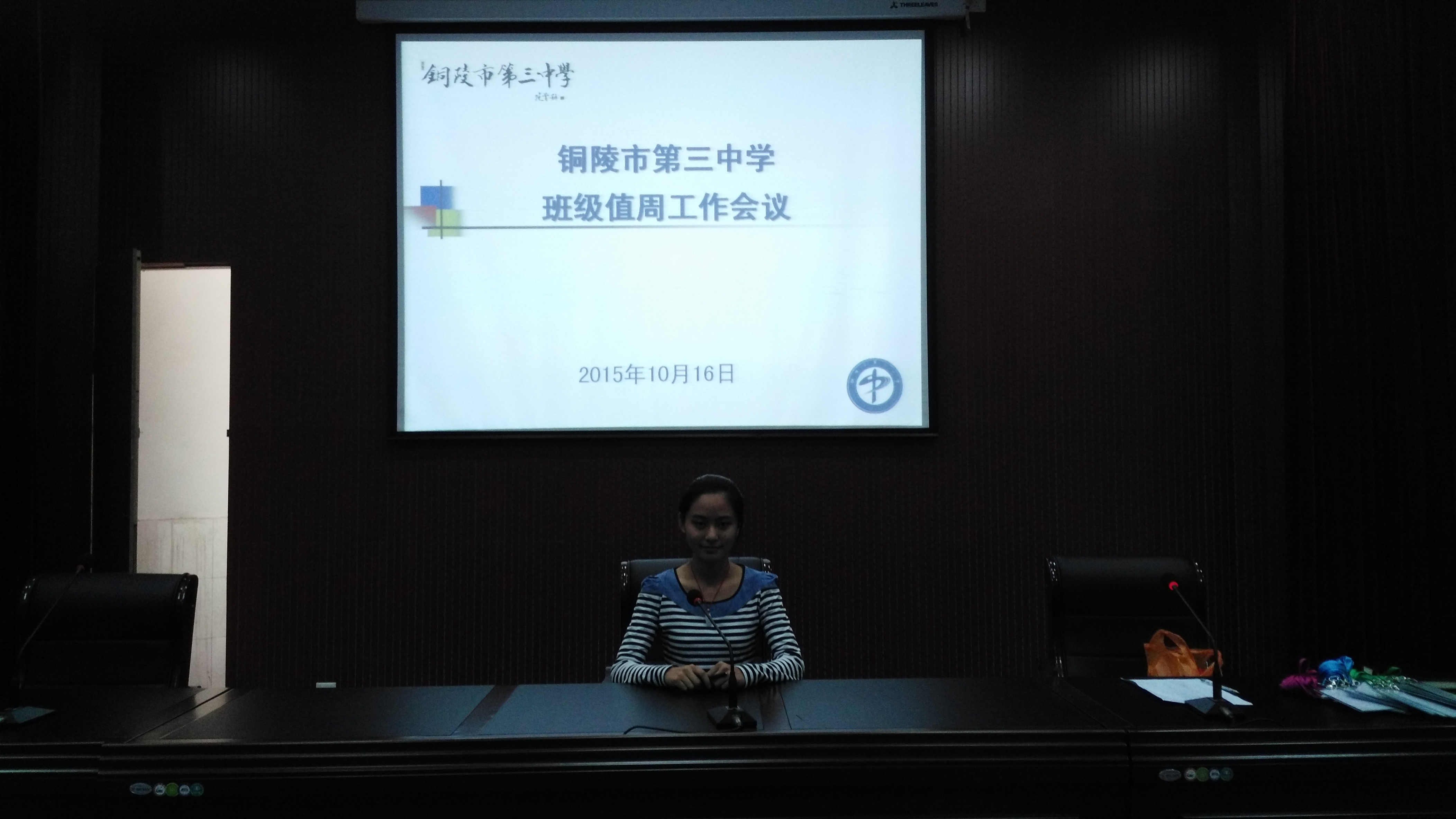 为进一步发挥学生主体作用,增强学生的责任感和主人翁意识,10月16日下午第四节课在校多功能厅,政教处召开了各班值周小组长会议,布置实施《铜陵市第三中学班级值周工作实施方案》。
