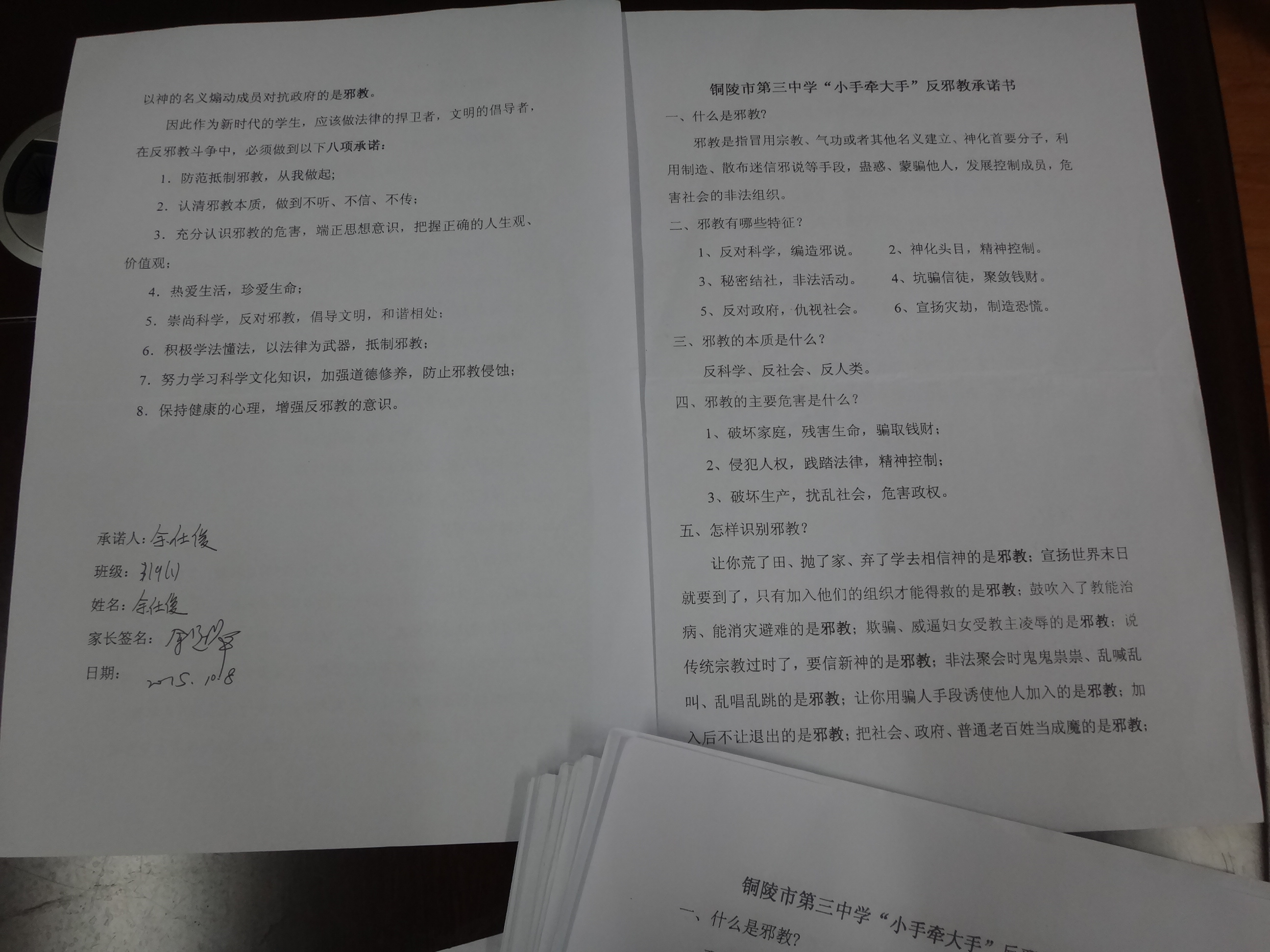 迅速成立了创建“无邪教示范校园”领导小组,加强对创建和教育活动的领导,召开各种会议开展反邪教教育培训。深入开展“小手拉大手”活动,通过承诺书的形式,形成学生带动家长,家长带动社会的良好氛围。举行手抄板比赛,反邪教宣传橱窗展览,校内电子屏宣传警示标语等使反邪教深入到班级、进教室、上课堂、入脑入心。
