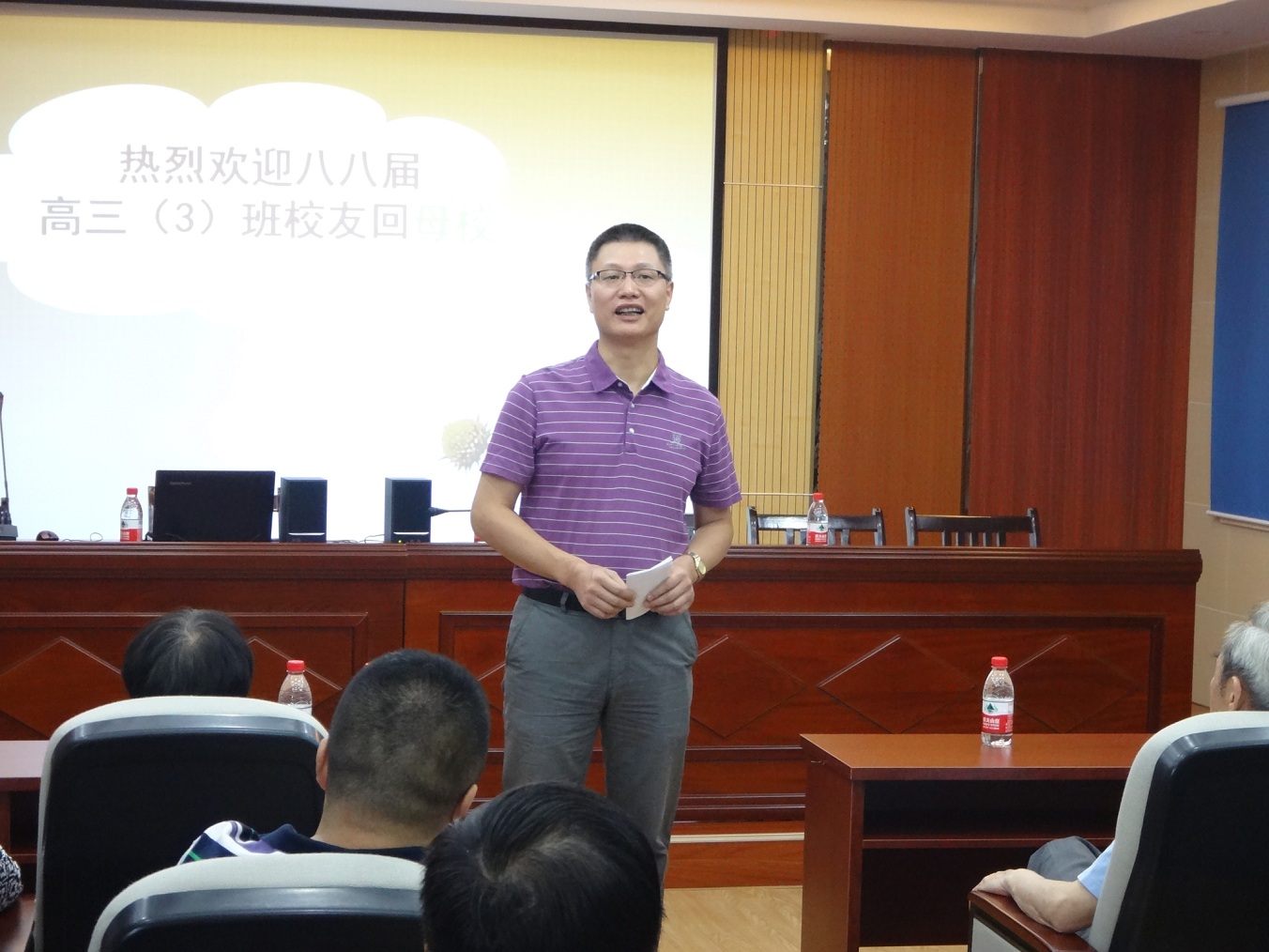 在多媒体会议室,校友们观看了建校五十周年纪录片,当年的班长和任课老师都相继致辞发言,聚会充满了热烈地气氛,师生情谊让人感动。回顾当年在三中的往事,那份青春洋溢,书生意气,已化成回忆,但绚丽多彩学习经历仍然影响至今。27年后的今天,青春无悔,抱负多有实现。无论做什么,大家心中都有一个愿望——为母校增光添彩。