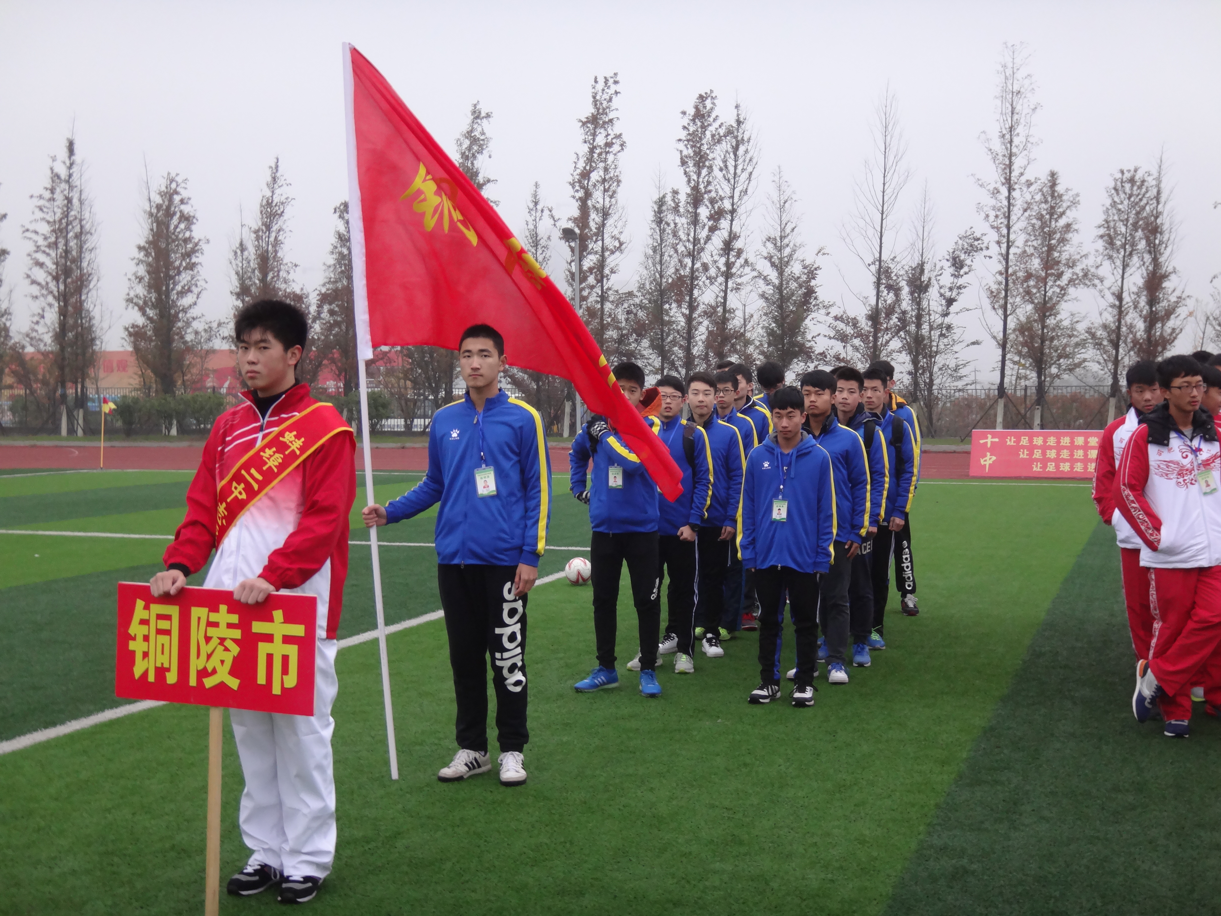 2015年11月23日,安徽省首届高中校园足球联赛在蚌埠市二中开赛,我校学生男子足球队代表铜陵市教育局参加此次大赛。由于本次参赛工作时间紧任务重,在钟士标校长的高度重视和关注下,副校长叶叶亲自主抓,教务主任张尤俊、体育组鲁仕纬老师和陈晰老师共同组织落实,在短时间内完成组织参赛学生的选拔、通知、动员、摄像、体检、购买保险及购买参赛服装等与报名有关的各项工作。对我校本次及时高效的参赛组织工作,教育局李勇局长给予了高度评价。