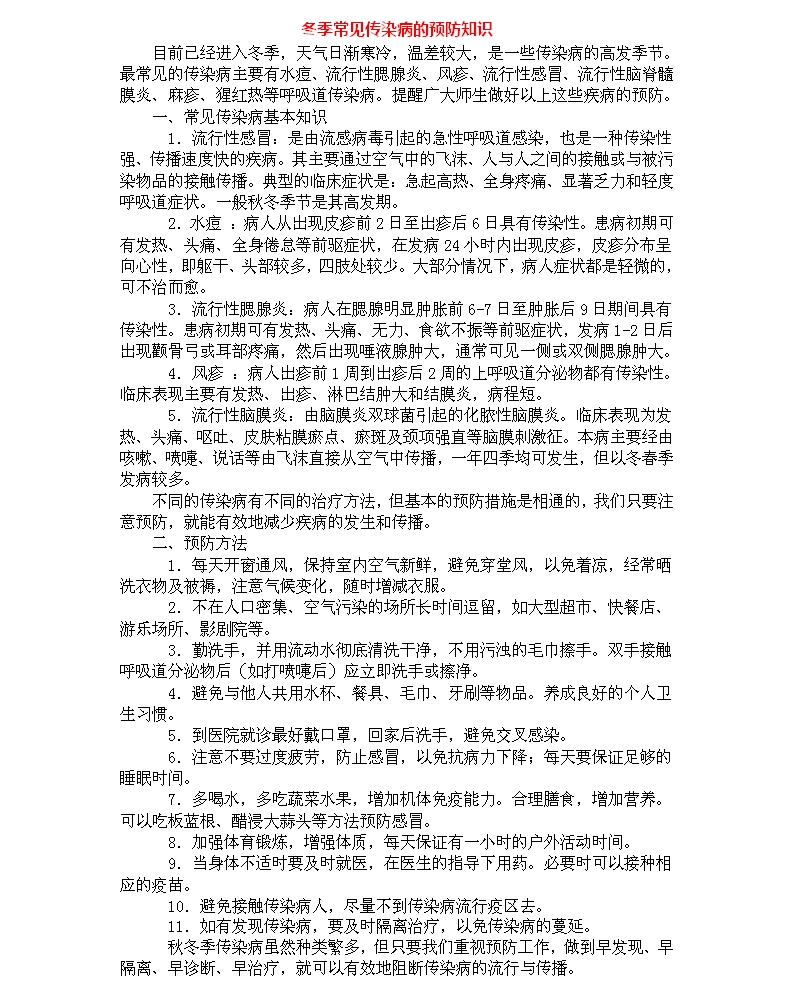 冬季是传染病频发季节,学校是人员聚集的场所,传染病的防控尤其重要。入冬以来,我校采取各项措施,积极加强传染病防控工作。