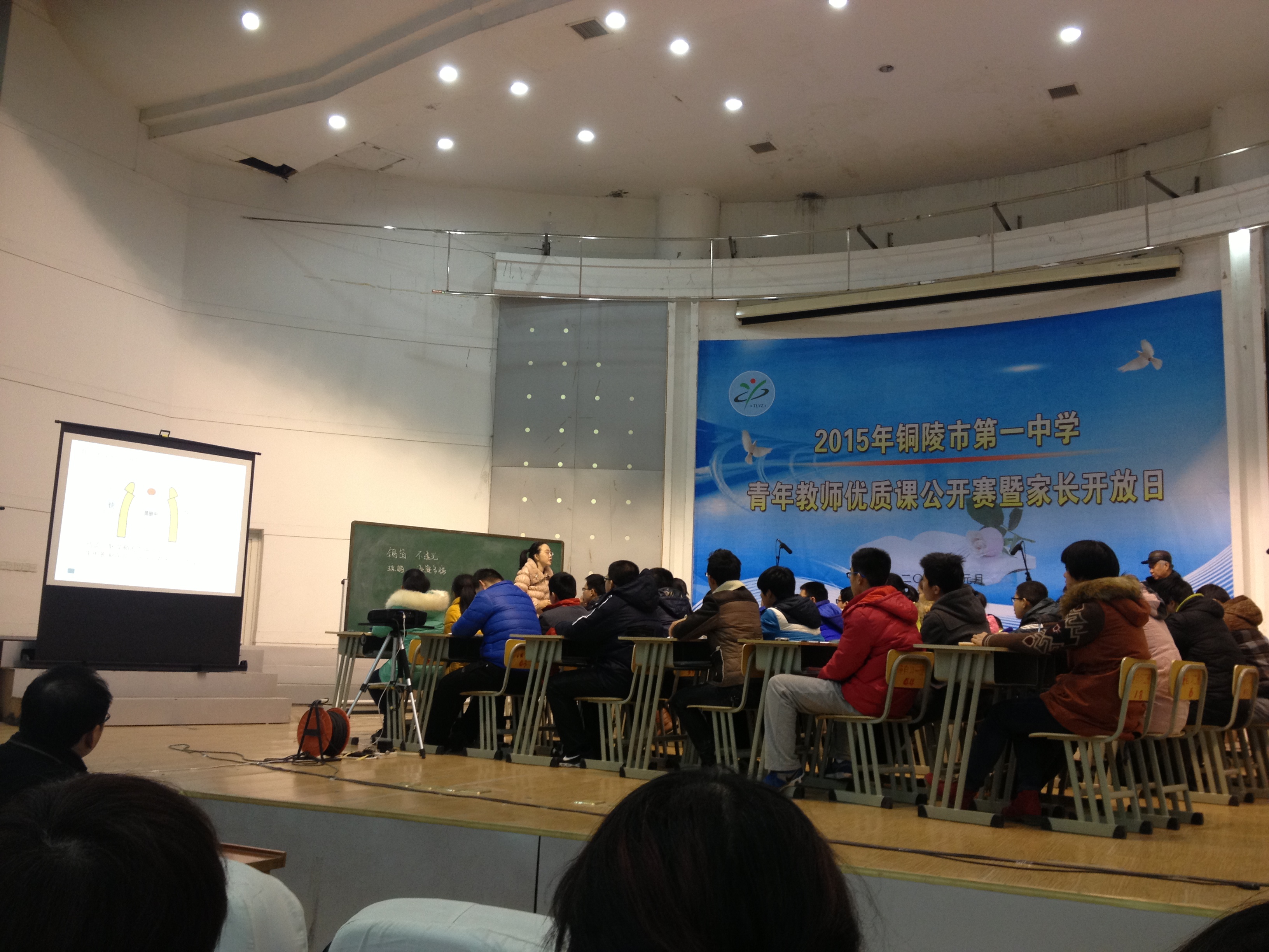 2015年元月17、18日在铜陵市一中举行了“2015年青年教师优质课公开赛暨家长开放日”活动,我组教师前往参加听课。一中青年生物教师张雪滢给专家、老师及家长展示了一堂高质量的优质课,课题为:生长素的发现。在这堂课上张老师以“探究植物向光性产生的原因”为线索,引导学生重新回顾并分析相关的经典实验,最终突破了教学难点,整堂课思路清晰,师生配合默契。在之后的周一我组教师对于这堂课展开了热烈的研讨活动。此次活动对本组青年教师有极大的激励作用。