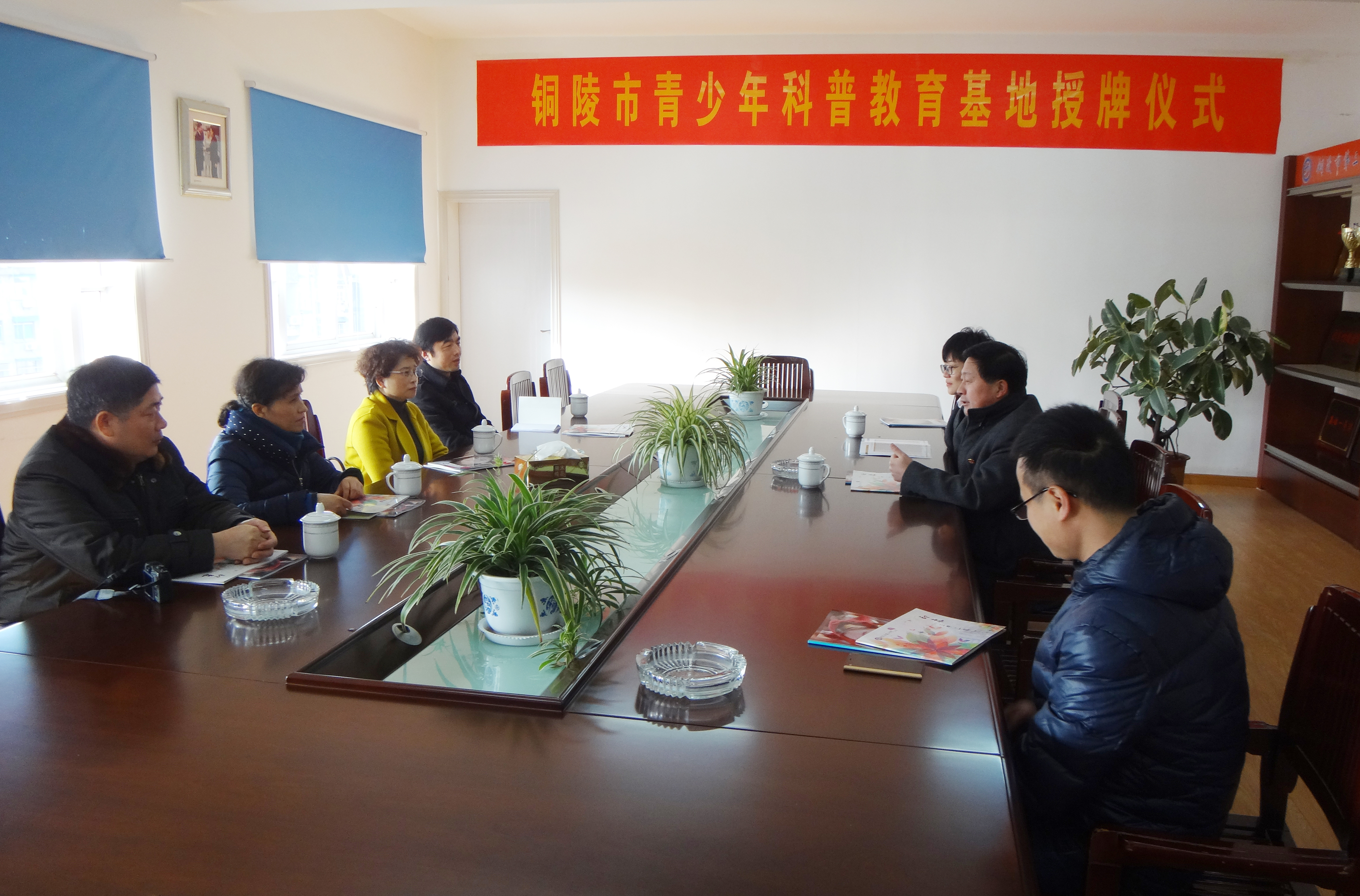 “铜陵市青少年科普教育基地”授牌仪式,校长钟士标、副校长叶叶出席了授牌仪式。