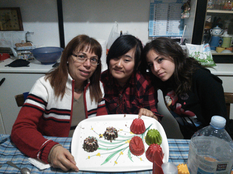 第二个要提及的是我交换周在Verona的接待家庭,因为要和学校去西班牙所以原本7天的交换周只剩下5天,我也没有想过短短5天的时间我们培养了这么深的感情,在这个家庭里我首先要提及的是妈妈Monica和仅仅大我一个月的哥哥Federico,其次是爸爸Paolo,在大学的另外一个哥哥Marco因为没有怎么跟我说过话所以我印象也不是很深刻。妈妈给我印象最深刻的就是细心,在我航班前一天特意打电话给我的正式接待家庭问我对食物的喜恶,还特意告诉我Verona的气温和Sicilia不一样,所以我必须带上厚实的衣服,我知道AFS并没有给她们我和我家庭的联系方式,是她主动向AFS询问的,我没有想过妈妈对这样细心,这样的细心和关怀让我一直非常感动,因为我是家里除了妈妈唯一一个女性,妈妈特意让两个哥哥挤在一个房间里,把Marco的房间给了我,甚至每个晚上都会跟我先说一遍第二天的行程,并让我自己选择是跟爸爸一起还是跟Federico一起去,为了不让我刚刚到达新家庭的时候感到尴尬,在从机场到家里的这段时间里不停的找话题和我聊,我其实并不是多么健谈的人,但是第一天,我跟妈妈聊了整整一天,从我正式接待家庭一直聊到中国,让我一下子就融入了这个家庭。第二个要提及的就是哥哥Federico了,可能是因为年龄相仿的原因吧,我们很聊得来,每天跟着AFS的活动结束后哥哥都会第一时间冲过来问我今天有什么趣事,玩的开不开心,去了哪些地方,我在Verona的那几天都是哥哥陪着我逛街的,哪家的冰淇淋味道最好,哪家店的费用比较贵,哥哥都会跟我很详细的说,一直很有耐心的陪我我逛完每一家店,我知道你今年要去加拿大交流,你问了我很多关于交流生活的问题,我也很乐意为你解答,希望能给你的交流生活带去点帮助,其实我答应你的那条围巾我一直有在织,但是还没有织完,估计是没有办法交给你了,我最后走了那天你抱着我哭的时候我非常感动的,本来说好六月份要回去的,可惜我没有遵守这个约定,对不起,但是我会一直给你发短信的,就像我们平时一样,下次等你来中国的时候我给你做蛋炒饭!你说很想尝我做的蛋炒饭,等你来中国找我的时候我一定做给你吃!