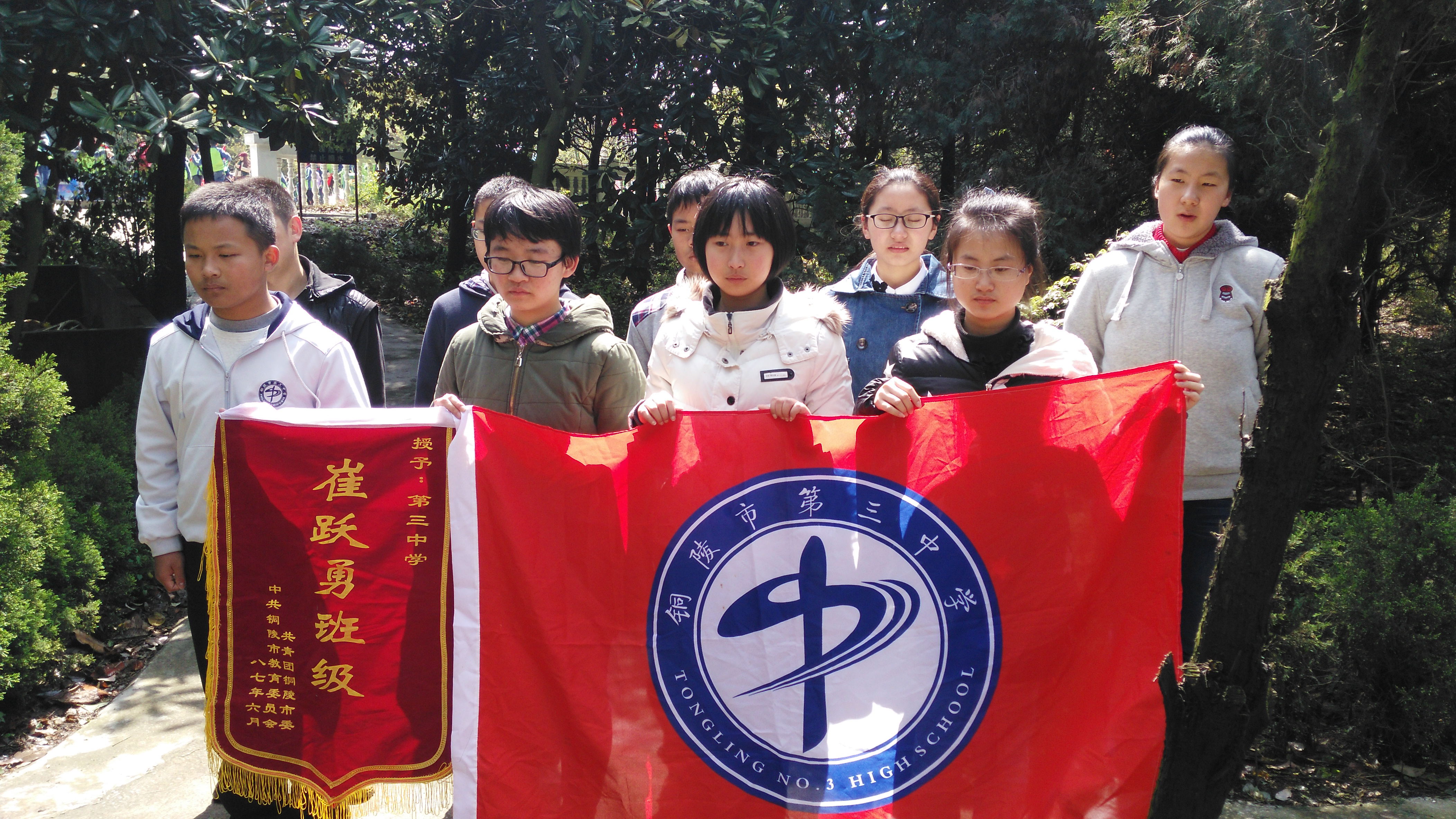 清明节刚过,祭扫革命烈士的热潮仍在继续。顶着斜风细雨,我校第十四届“崔跃勇班级”的同学们前往铜陵县笠帽山烈士陵园进行祭扫活动,缅怀和凭吊三中校友、一代“风流儒将”、“一级战斗英雄”崔跃勇烈士。活动开始以后,同学们有序列队,向崔跃勇烈士墓敬献花篮,默哀,崔跃勇班级团支部书记在崔跃勇墓前宣读了《烈士墓前的寄语》,向烈士表达了崇敬之情。大家绕烈士墓缓行一周,对在保卫祖国,维护祖国尊严的战争中而英勇献身的崔跃勇烈士表达了无限的怀念。随后,大家还一同瞻仰了烈士塔。
