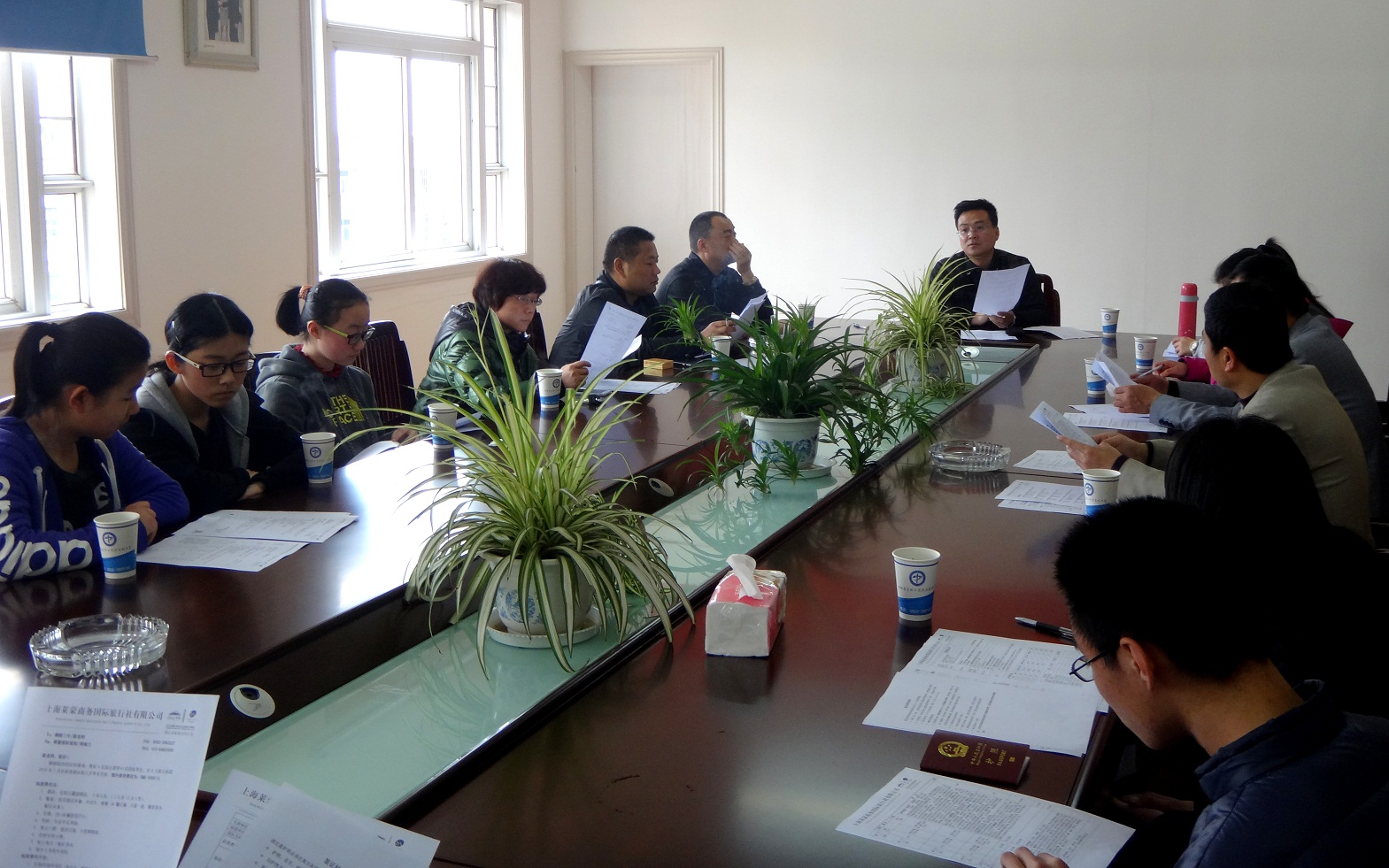 本校讯 4月15日下午,我校召开了2015年出访英国师生团培训会,4名出访老师和6名学生及家长参加培训会。