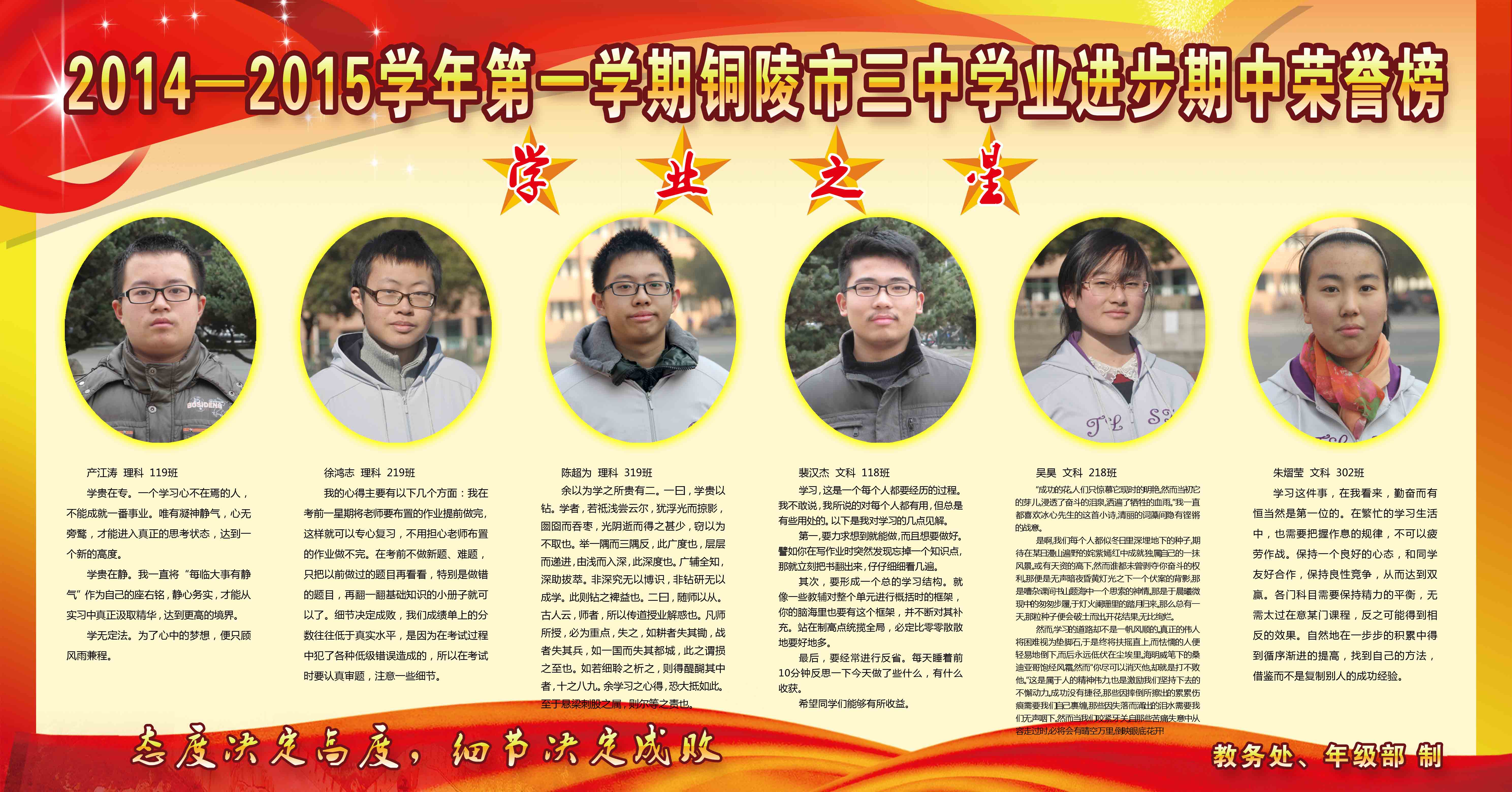 2014-2015学年度第一学期学业进步期中荣誉榜之学业之星