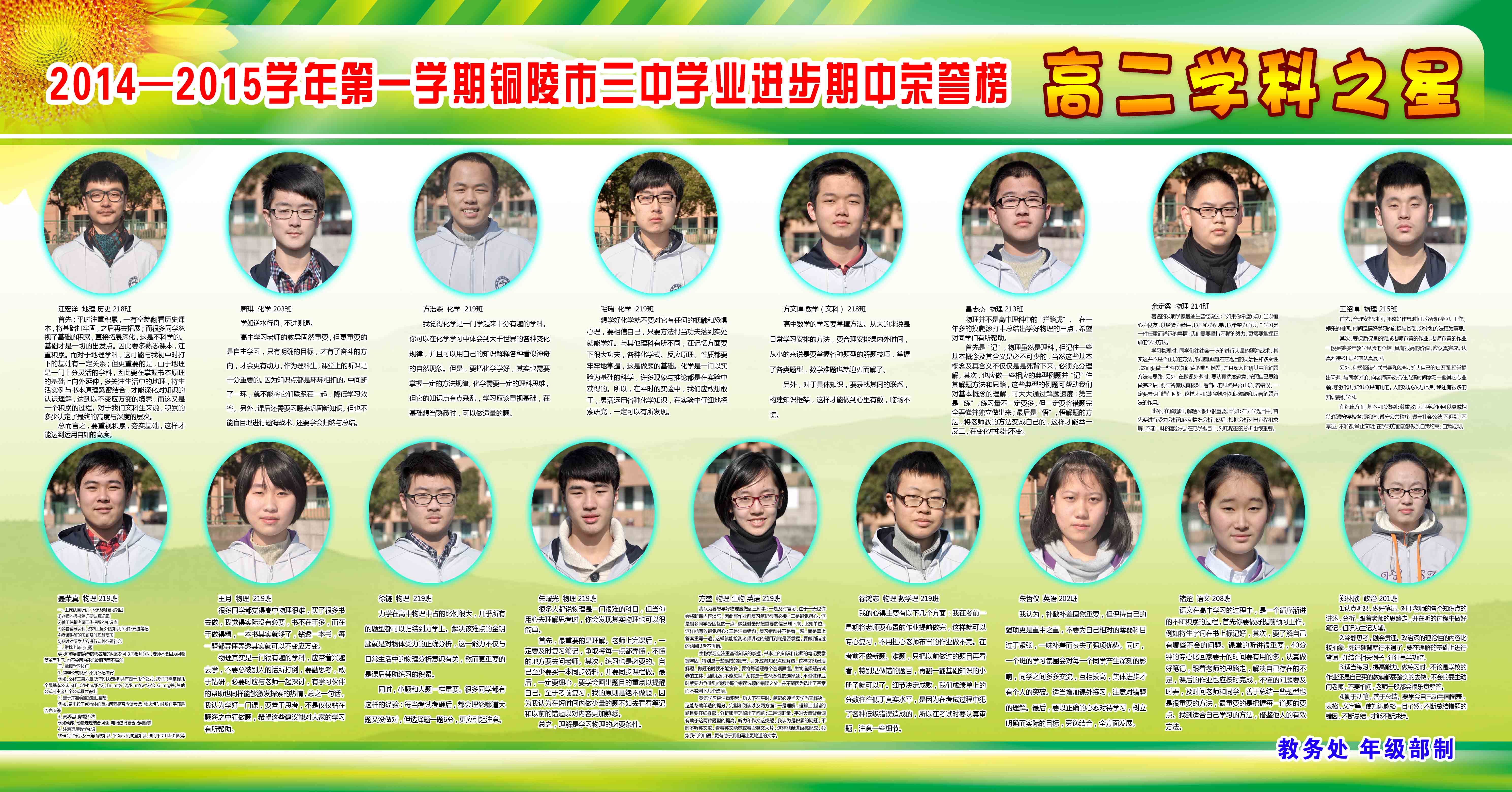 2014-2015学年度第一学期学业进步期中荣誉榜之学科之星(高二)