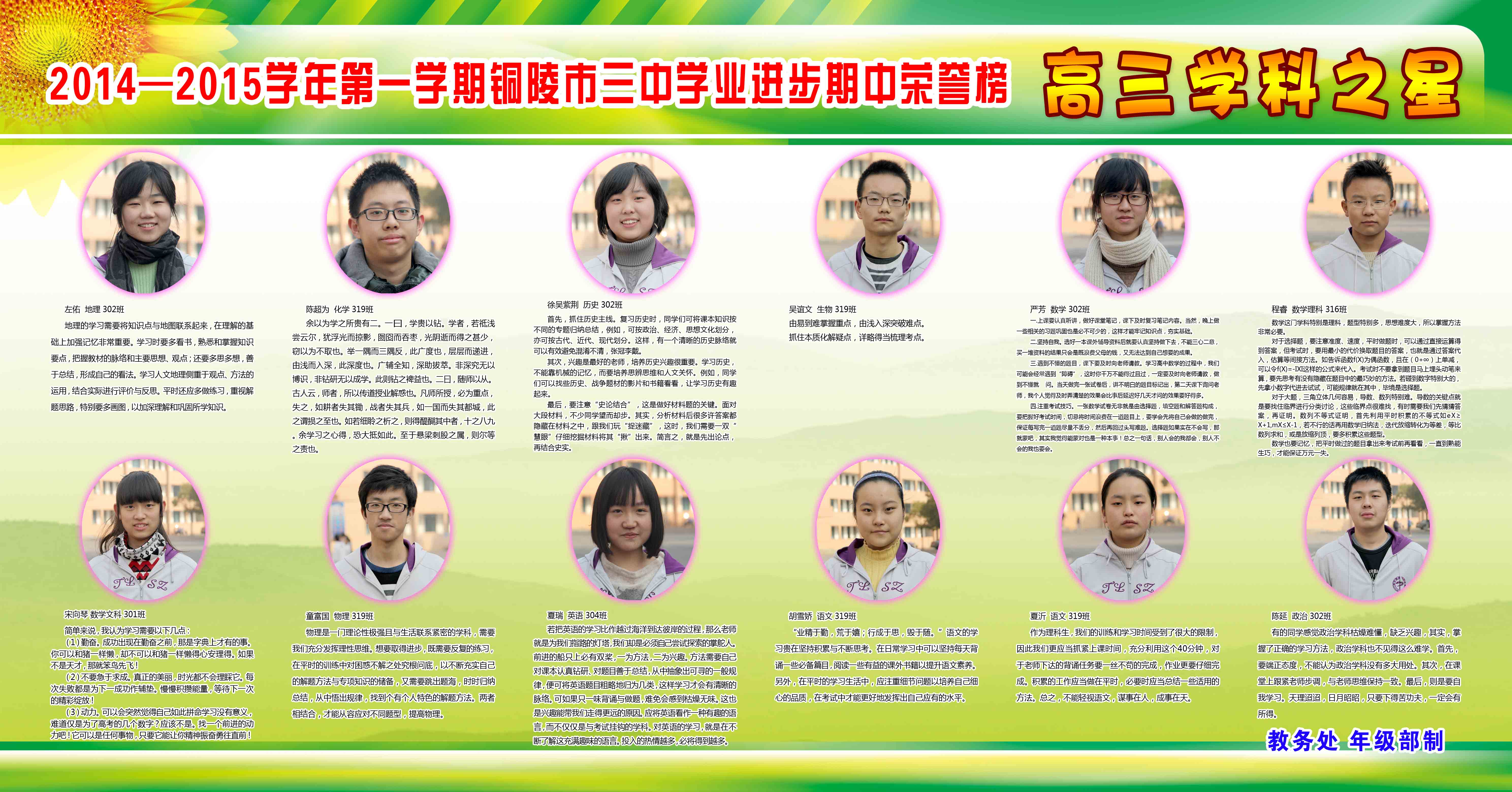 2014-2015学年度第一学期学业进步期中荣誉榜之学科之星(高三)