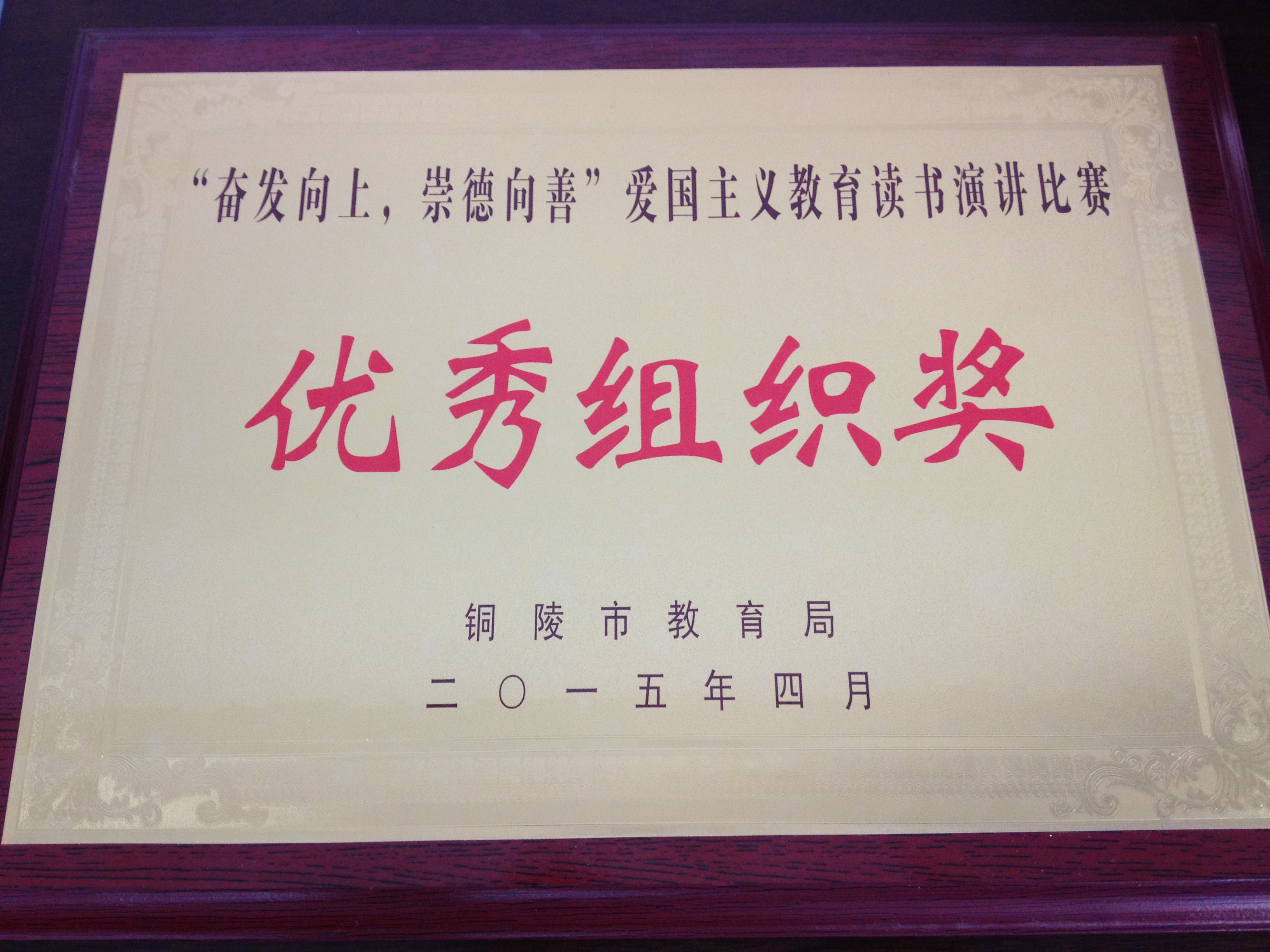 签于我校对此次比赛的高度重视和悉心组织,我校被教育局授予“奋发向上,崇德向善”爱国主义教育读书演讲比赛优秀组织奖单位。师生们留下了对此次活动的美好记忆。