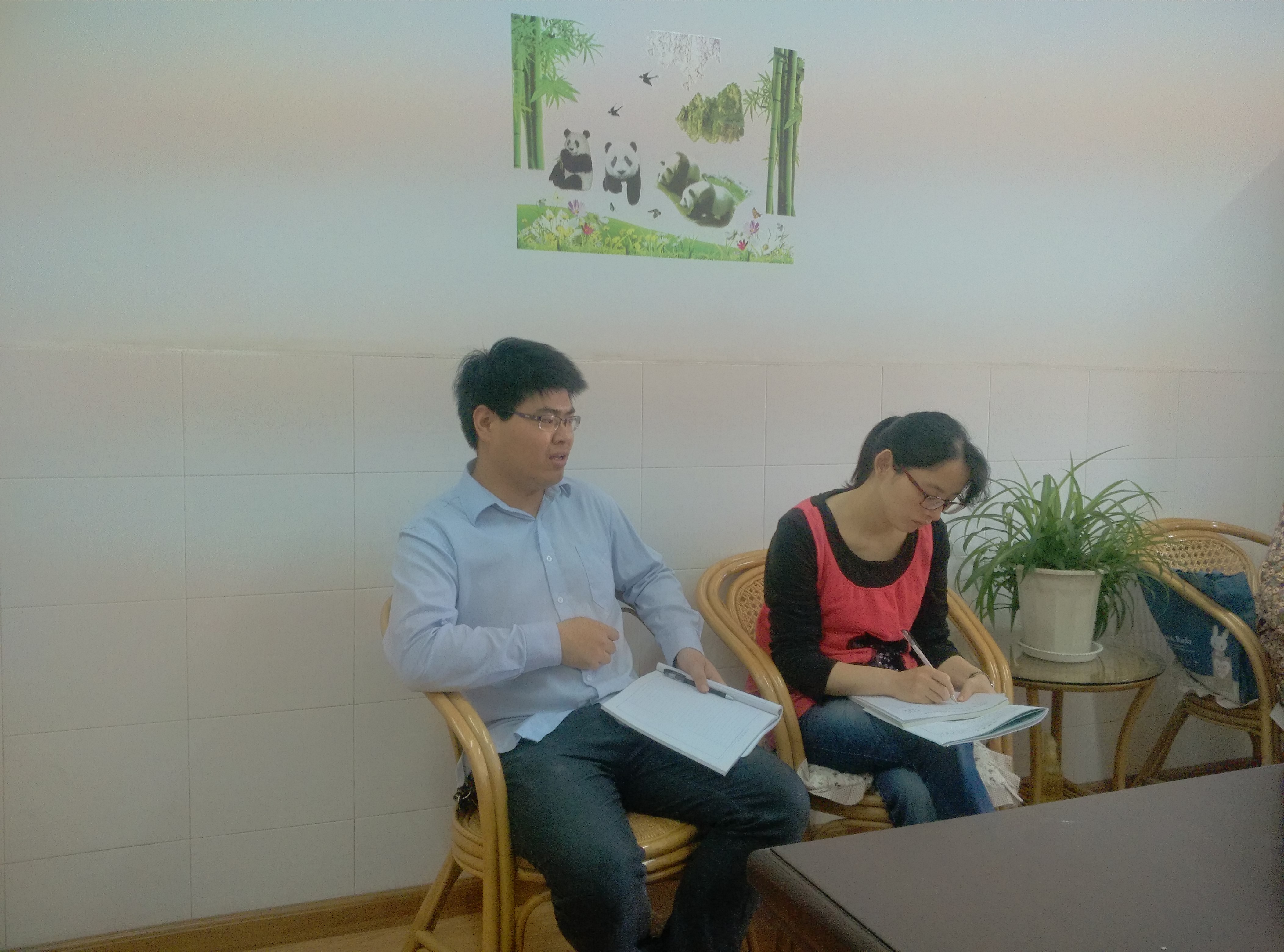 课后,全体成员集中到综合楼410办公室,开展议课研讨活动。季老师先说明了此节复习课的设计思路。俱乐部成员们对季老师的复习课提出各种意见和建议。参与活动的教研组长陆老师也给出了指导性建议。