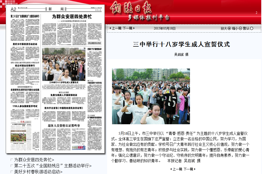 三中举行十八岁学生成人宣誓仪式 吴启斌 摄