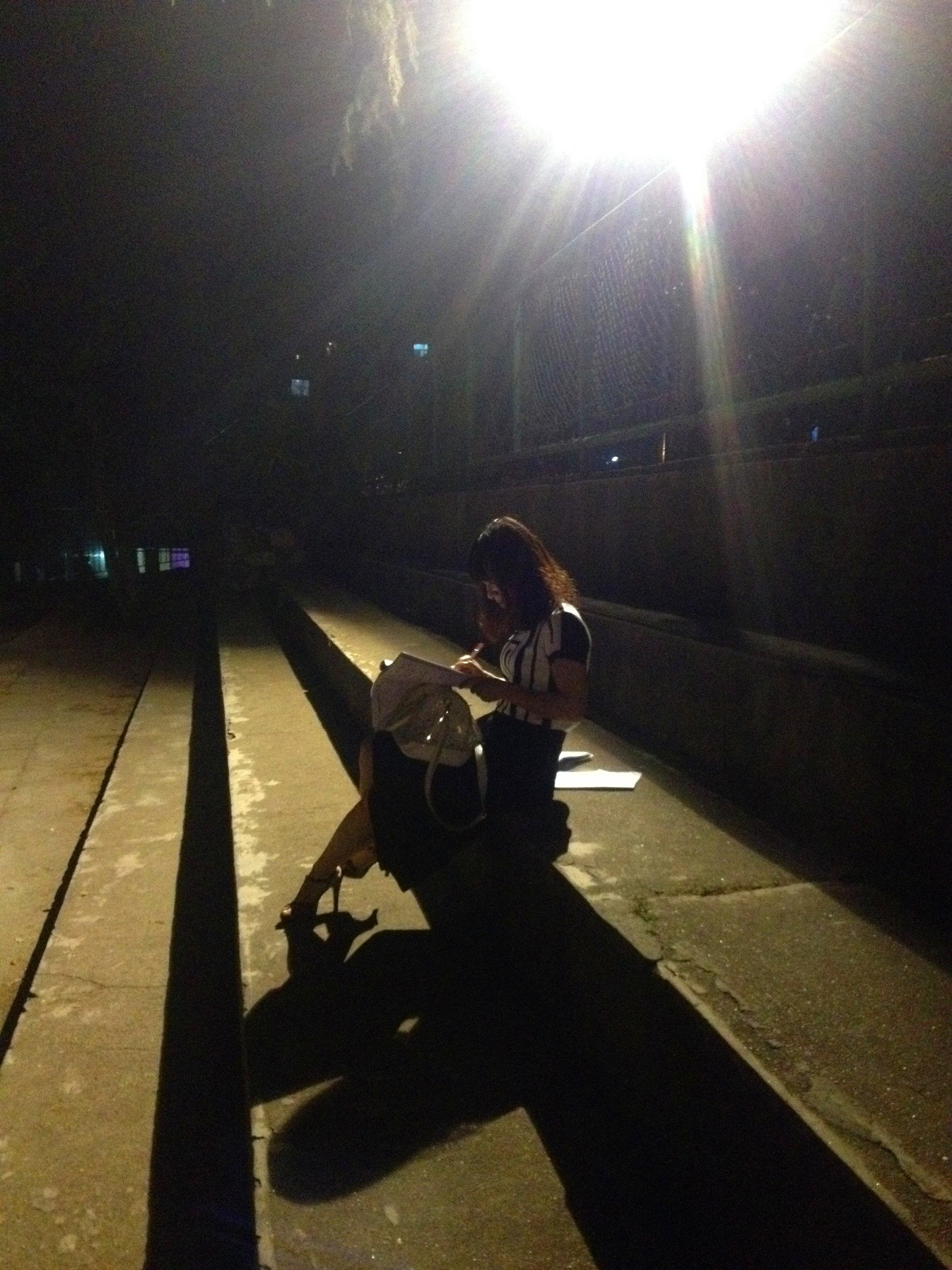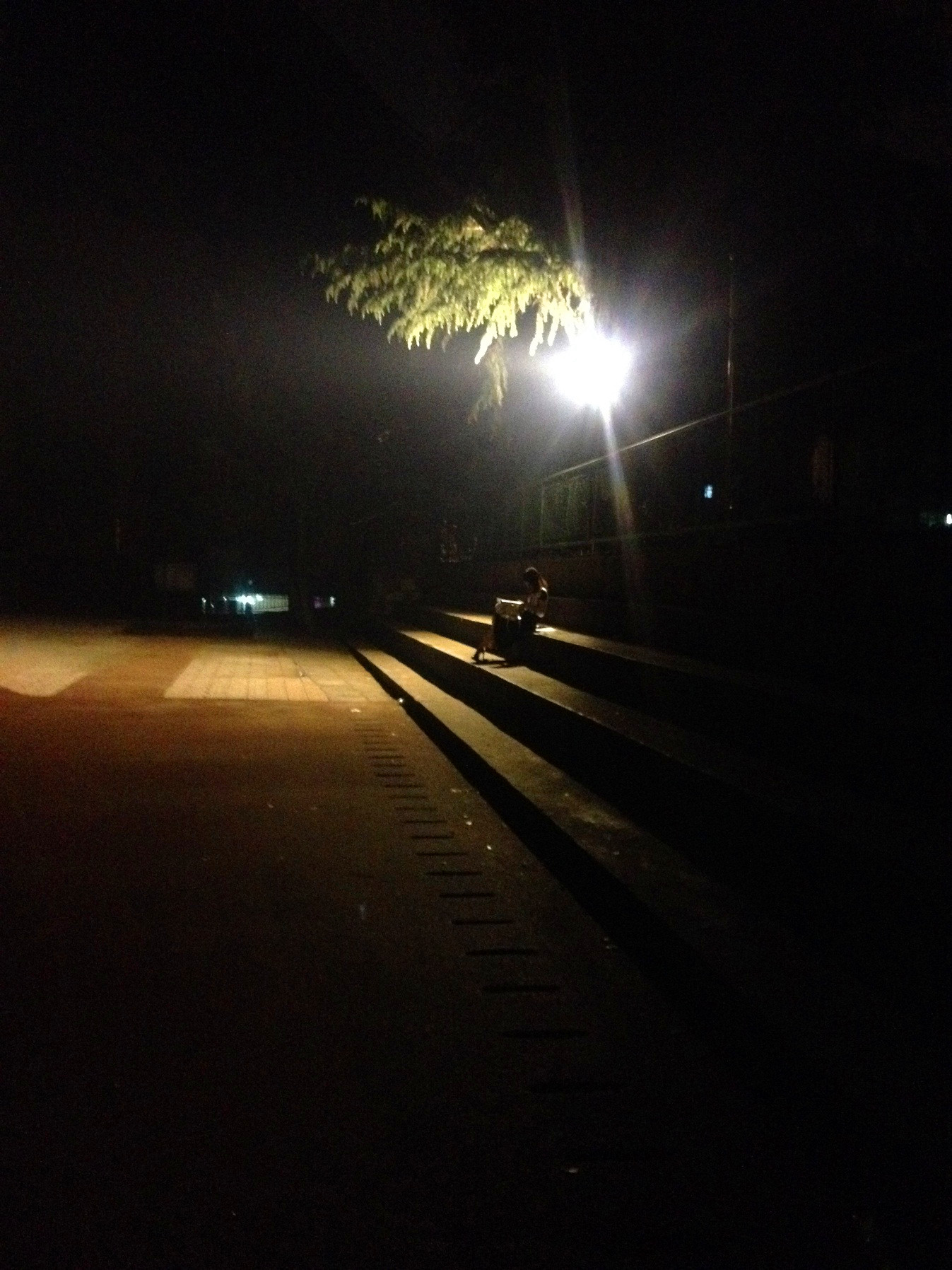 本校讯 23日晚8点,一位女教师在铜陵市三中操场的路灯下批改学生作业。经了解,该教师为三中高三数学老师李红,当晚,李红老师准备在办公室批改作业,无奈钥匙丢在家中,她只好拿着从家里带来的学生试卷坐在路灯下批改,一边等她的先生送来办公室钥匙。