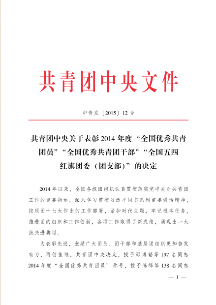 1.中青在线:2014年度“全国五四红旗团委(团支部)”名单