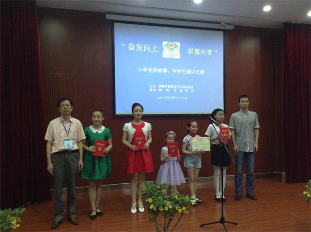 5月28日下午,由市委宣传部、教育局主办的铜陵市青少年“奋发向上,崇德向善”讲故事、演讲比赛在我校圆满落幕,来自全市中小学的20名选手参加了比赛。