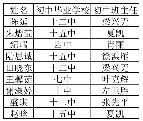 另有1名文科数学满分被303班的王行(原初中:钟鸣中学 初中班主任:徐从保)摘得,他的数学老师是张鹏老师,班主任为王龙凤老师。