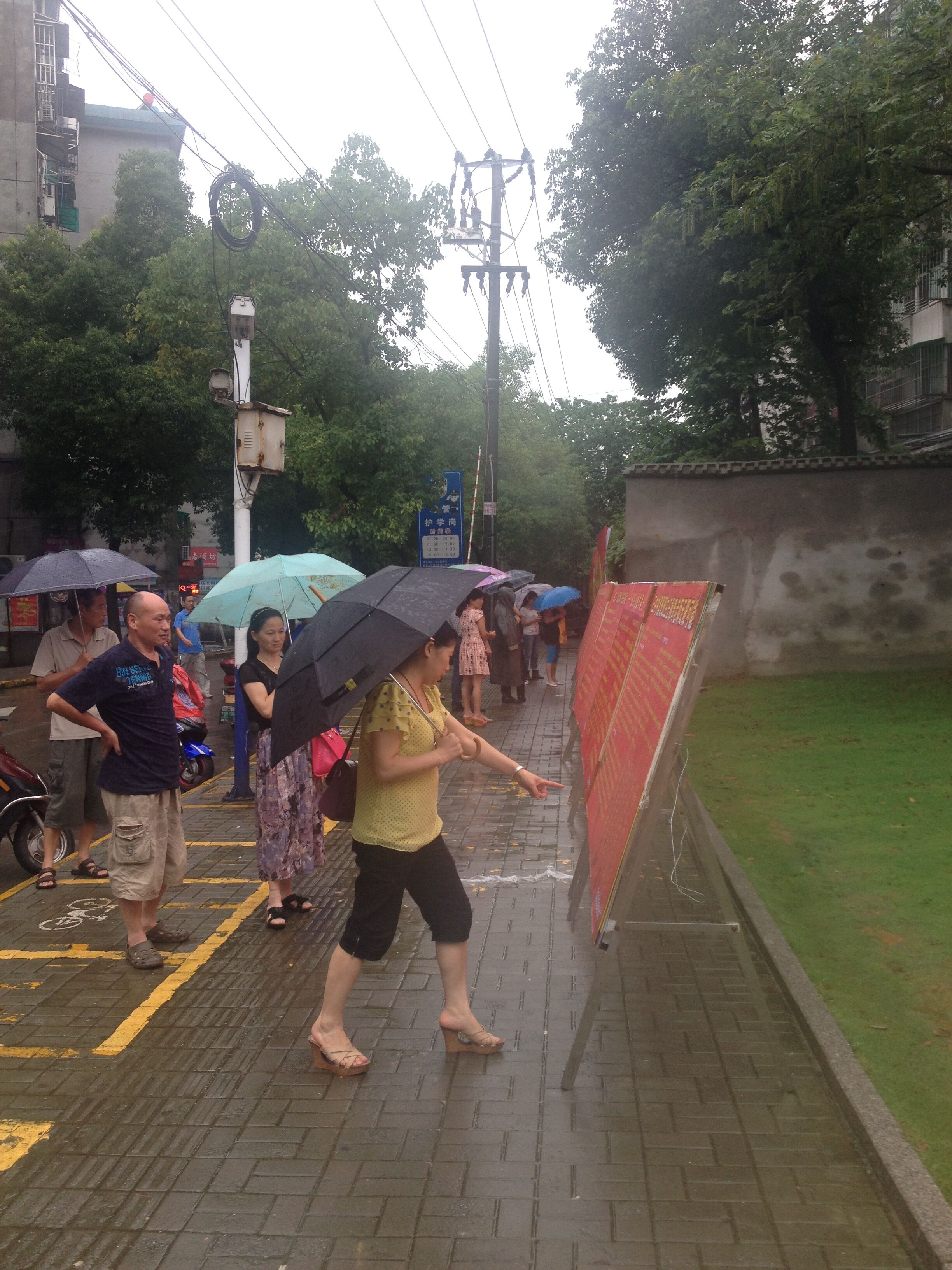 本校讯 我校今年高考取得历史性突破的消息传开后,校教务处及时制作展板向市民公布真实成绩,此举得到了市民们的普遍赞誉。记者今天在三中大门口注意到,尽管下着大雨,许多经过三中门口的市民们纷纷还是驻足下来饶有兴致地查看展板上的大红喜报,并有人现场拍照做纪念。