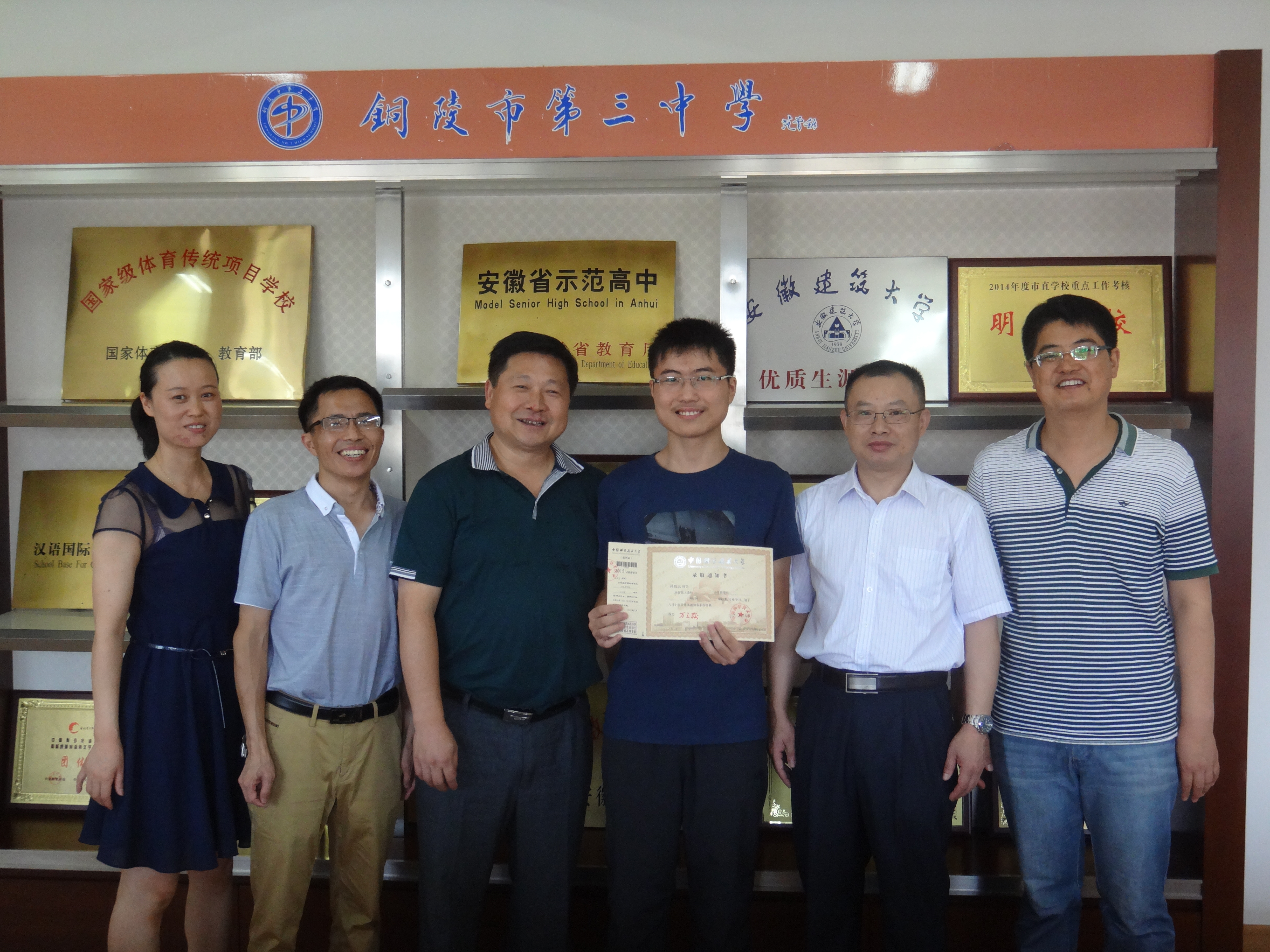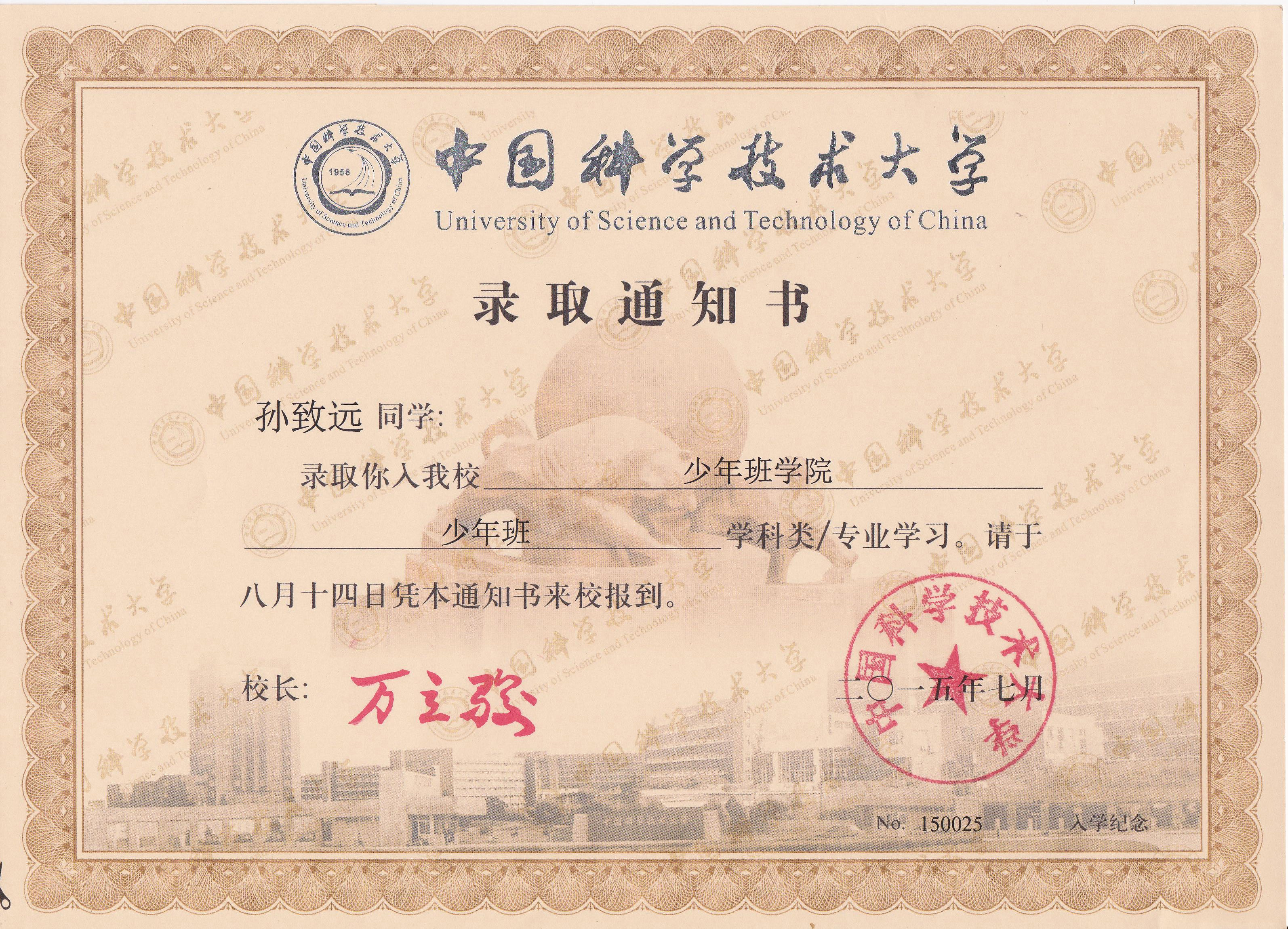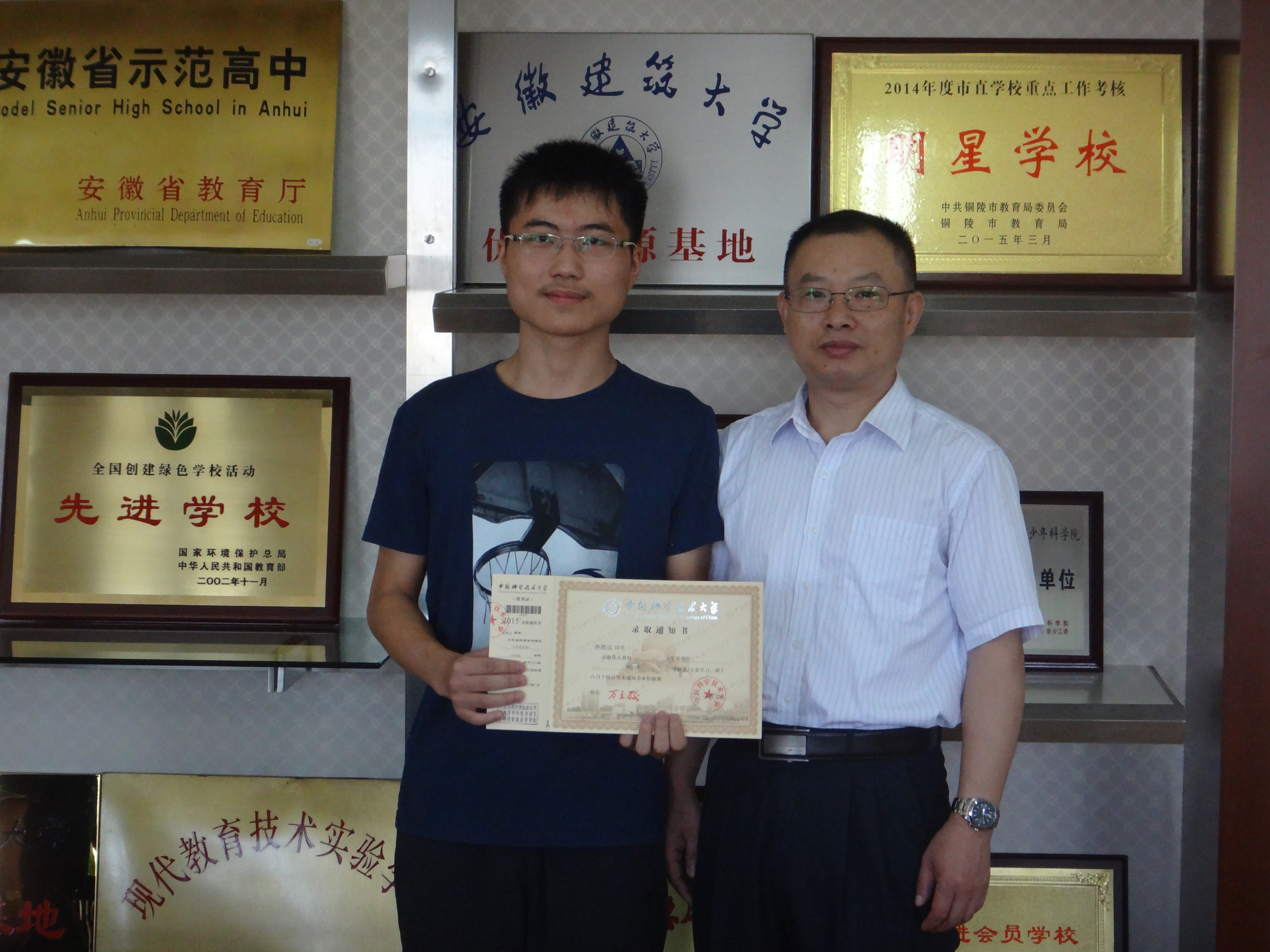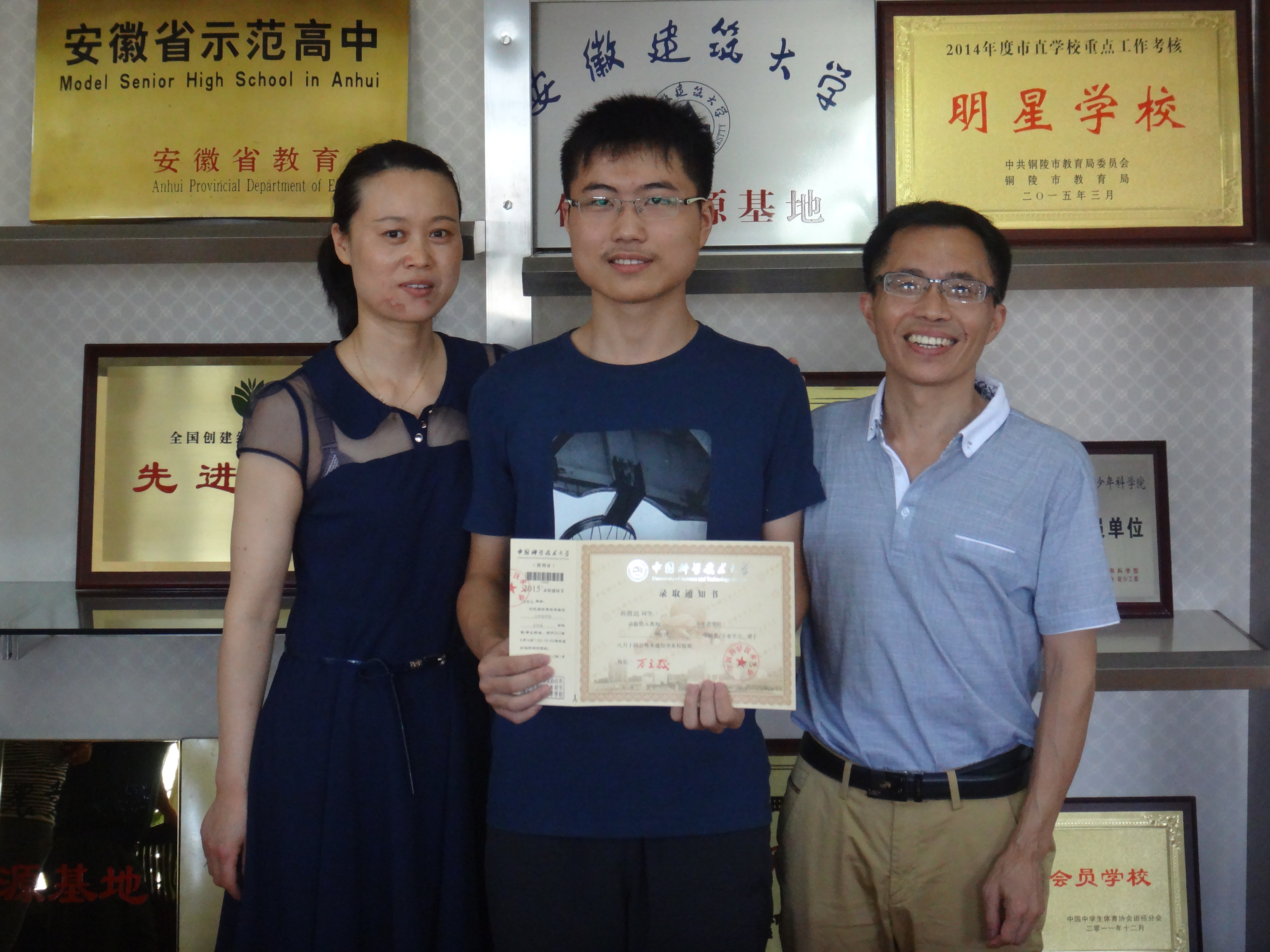 初中毕业于市十五中(班主任为张仕霞老师)的孙致远同学,是我校招收的第二届实验小班学生,班主任是杨春生老师。在此之前,首届实验小班吴垠同学2014年也以优秀成绩考取中科大少年班。